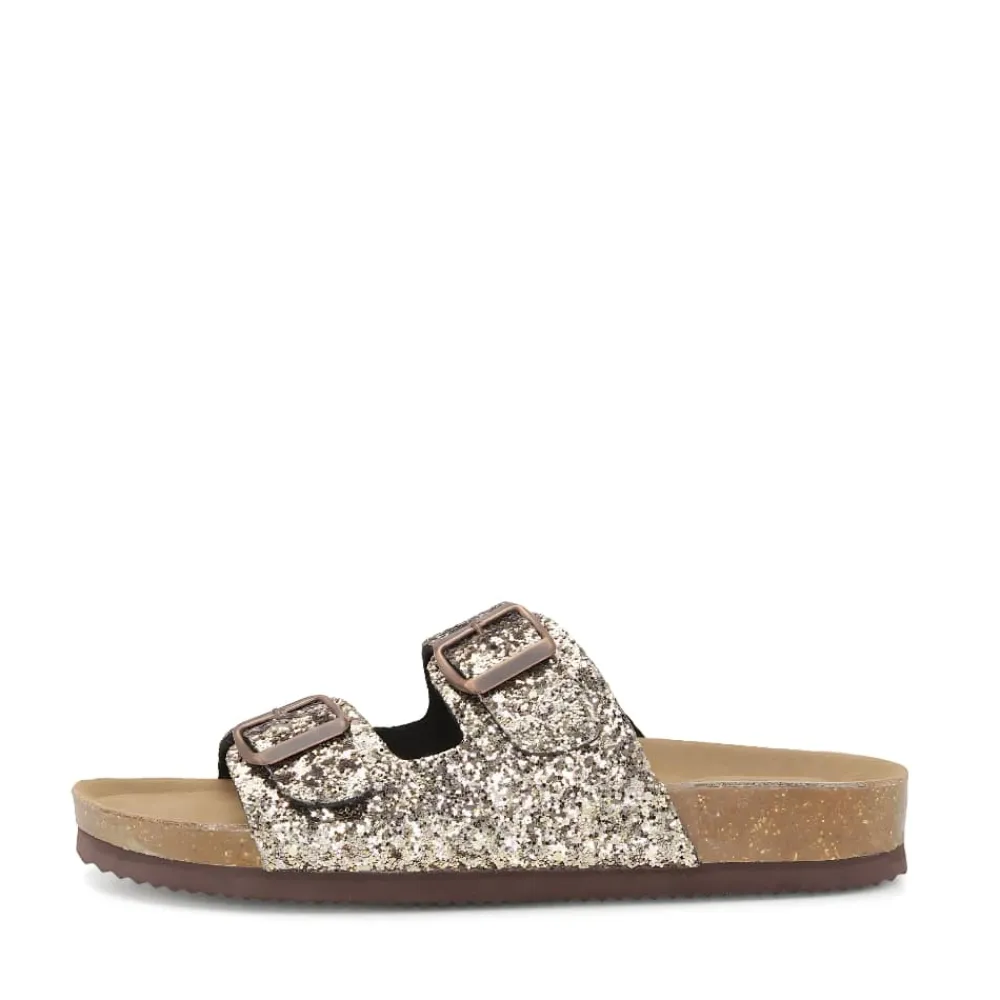 CPH-Comfort Bio sandal til børn med det fineste guld glimmer. Smuk sandal fra CPH-Comfort i en smart guldglimmer farve. Modellen har en dejlig blød ruskinds sål, der sikrer komfort hele dagen. Sandalen har to justerbare spænder, så du nemt kan tilpasse den efter behov for den perfekte pasform. Gå igennem sommeren med blød komfort og smukke glimtende sko.