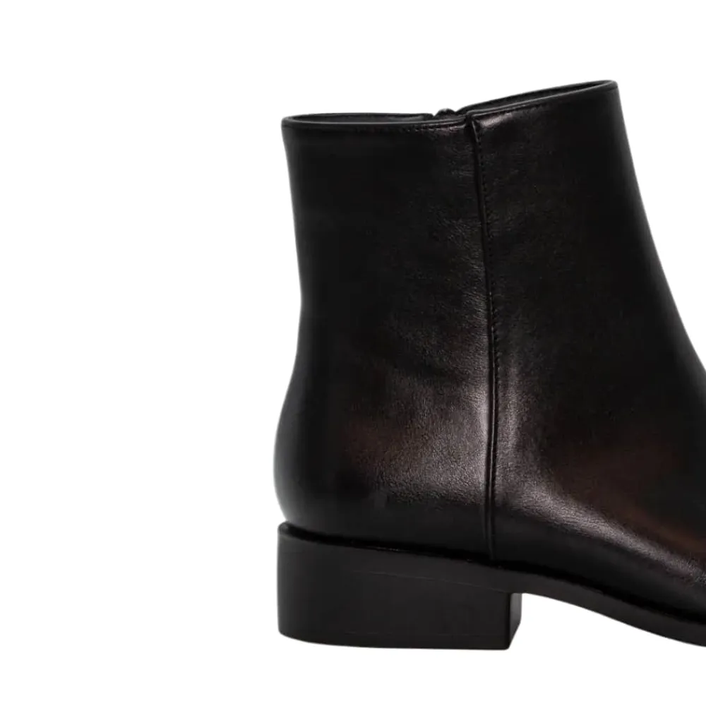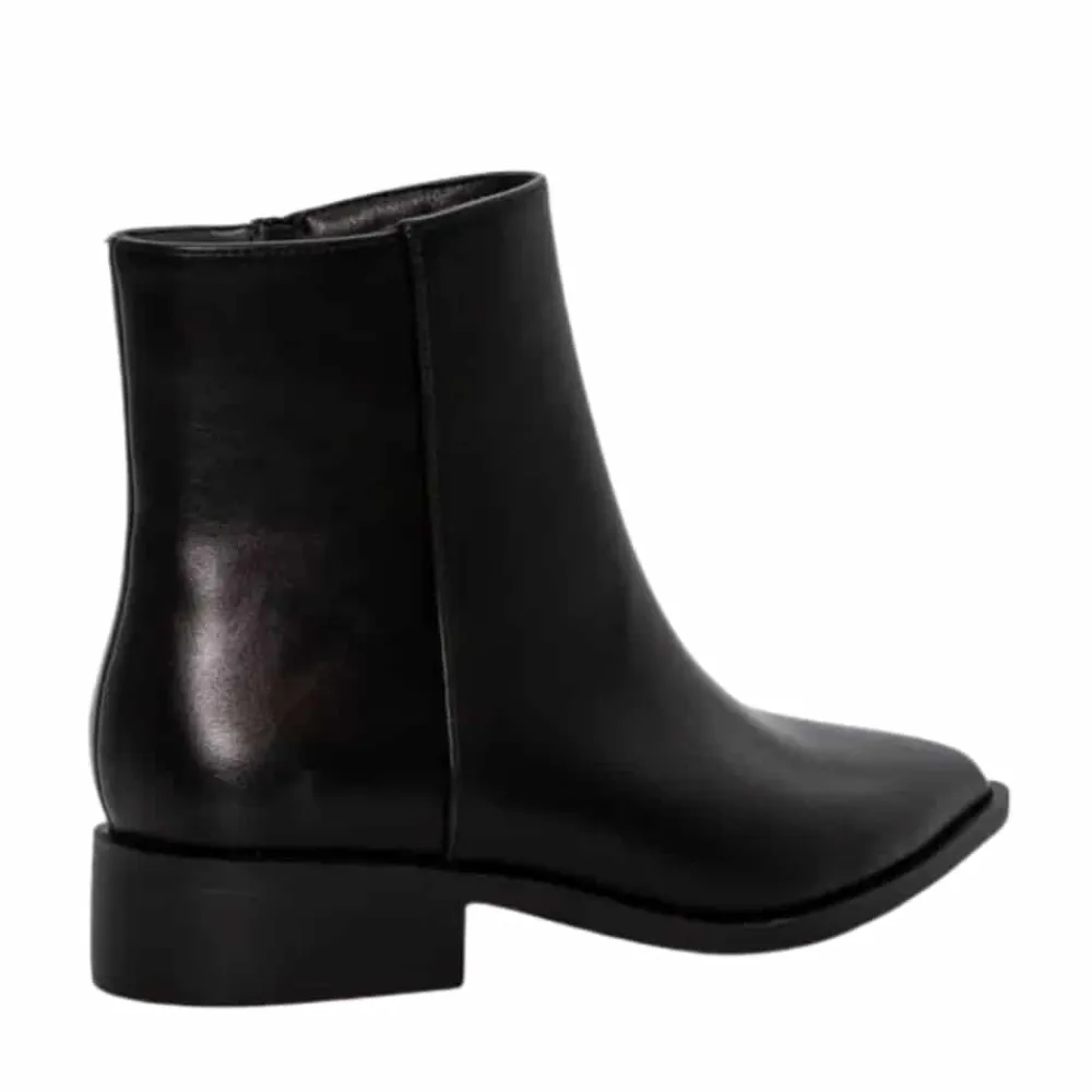 Duffy Fulgatore Nove støvle til dame i sort. Denne sorte støvle er en klassisk og tidløs model med en elegant spids tå, der tilfører et moderne touch. Støvlen har en funktionel lynlås på indersiden, som gør den nem at tage af og på. Indvendigt mødes du af en blød sål, som giver komfort dagen lang. Og den lille hæl på 3 cm giver et feminint løft, mens ydersålens rillet mønster øger skridsikkerheden.