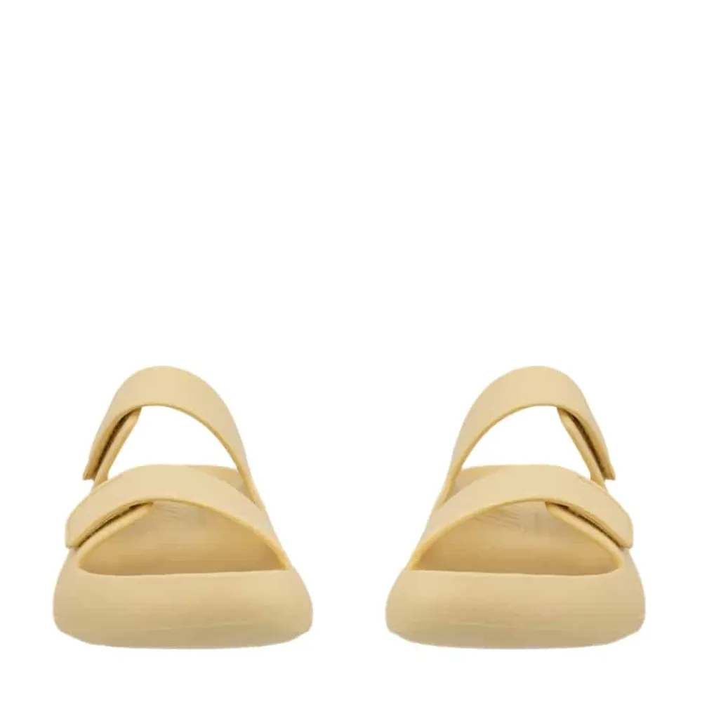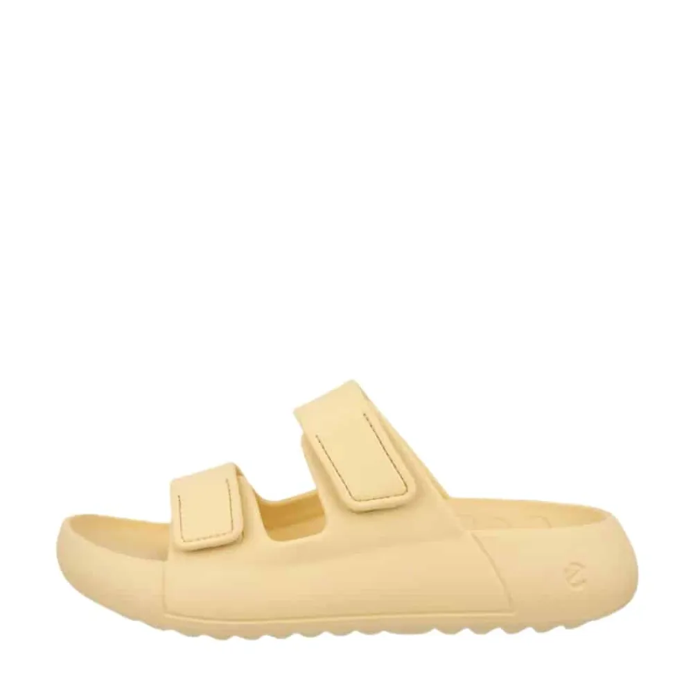 Ecco Cozmo E sandal til dame i gul. Denne lette og fleksible sandal i en flot gul farve tilføjer et stilfuldt look. Med to velcroremme, der giver mulighed for at justere pasformen, og et slip-in design, der gør den nem at tage af og på, er denne sandal både praktisk og komfortabel. Den bløde EVA skumsål og Ecco Fluidform™ teknologi giver optimal komfort hele dagen, og den rillet ydersål sikrer ekstra skridsikkerhed.