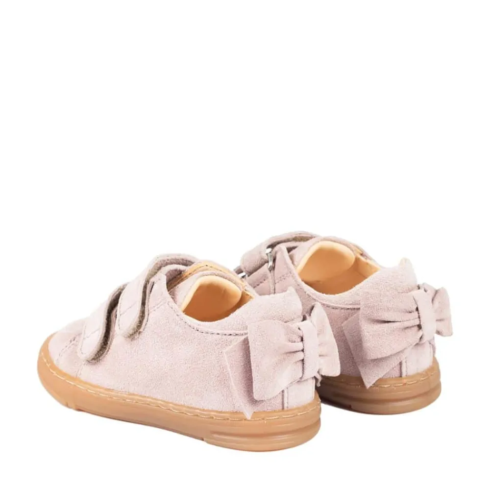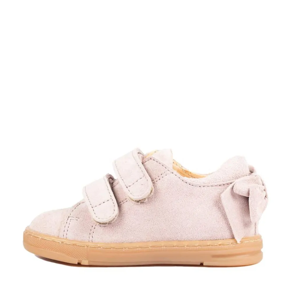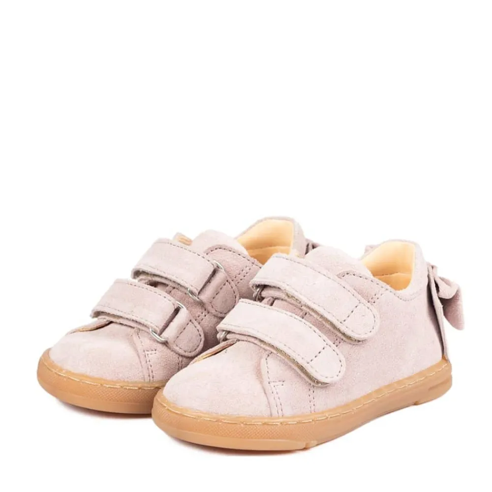 Angulus sko til børn i rosa. En fortryllende sko med et fin sløjfe detalje bagpå, der tilføjer et ekstra strejf af elegance. Fremstillet af 100% skind både udvendigt og indvendigt, garanterer denne sko høj kvalitet og komfort. Med velcrolukninger er det nemt at tage skoen på og af. Skoens gummiydersål er udstyret med et effektivt mønster, der forbedrer skridsikkerheden.