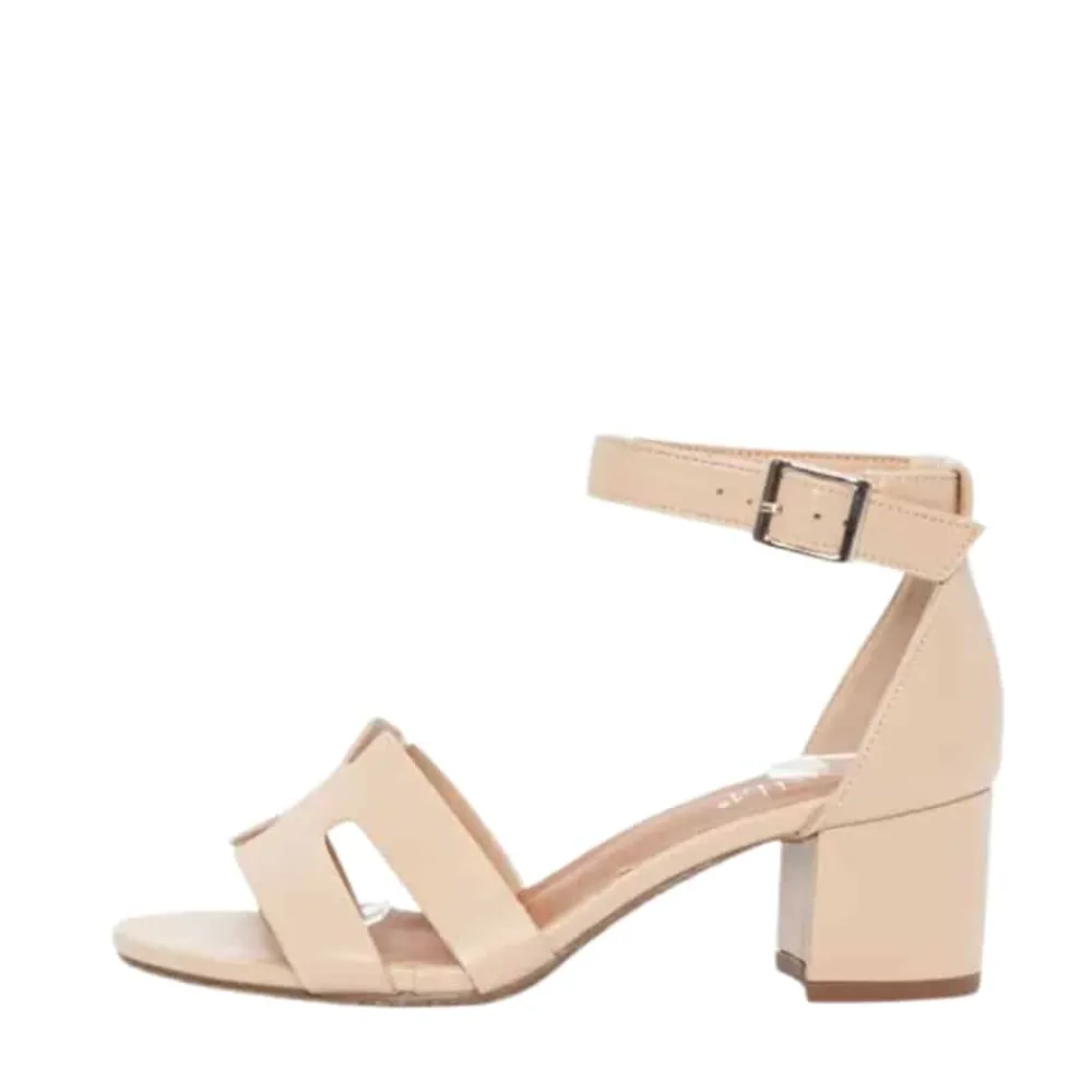 Duffy Rivello Diciotto sandal til dame i beige. Stilfuld sandal i beige med en mønstret rem over forfoden, der giver et pænt og moderne look. Sandalen har en justerbar rem med spænde, så den nemt kan tilpasses efter behov. Indvendigt finder du en blød sål, som sikrer behagelig komfort dagen igennem. Den solide blokhæl på ca. 5,5 cm giver et flot løft og god støtte dagen lang.