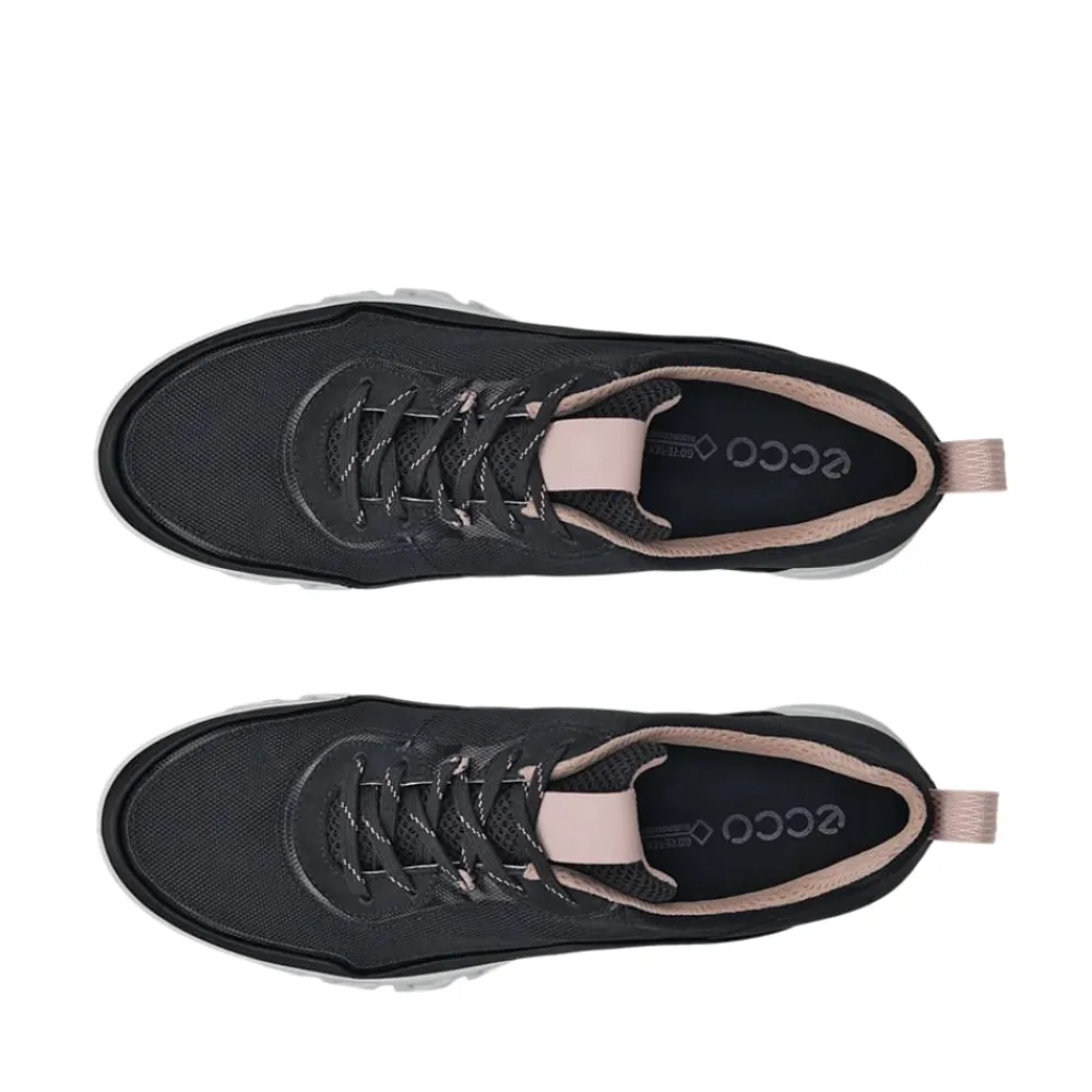 Ecco Multi Vent W sneakers til dame i sort. ECCO MULTI-VENT W er den ideelle sneaker til dig, der ønsker en kombination af stil, komfort og funktionalitet. Med en innovativ GORE-TEX SURROUND® teknologi holder skoen dine fødder tørre og veltilpasse hele dagen. Overdelen er fremstillet af en blanding af kvalitetslæder og tekstil, der giver et moderne udtryk og en let fornemmelse på foden. Snørebåndene i tekstil sikrer en fleksibel og tilpasset pasform, mens den lette sålkonstruktion gør skoen behagelig at have på, uanset om du går gennem byens gader eller bevæger dig i naturen.
