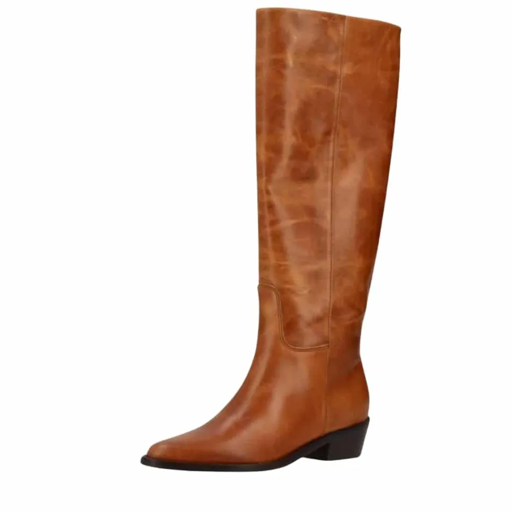 Phenumb Copenhagen Confidence lang støvle til dame i cognac. Denne moderne støvle i brun er fremstillet af kernelæder som giver både et smukt udtryk og en god pasform. Det lange skaft tilfører et feminint og elegant look. Indvendigt er modellen udstyret med en blød indersål og en inderside i glatskind, som tilsammen sikrer en behagelig komfort hele dagen. Den cirka 4,5 cm høje blokhæl fuldender designet med et flot løft, uden at du går på kompromis med komforten.