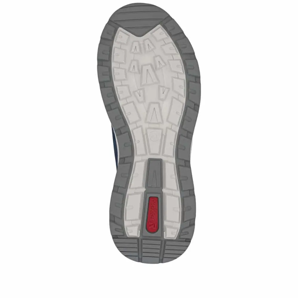 Rieker sneakers til herre i blå. Smarte sko med funktionelle detaljer, der gør dem ideelle til hverdagsbrug. Modellen er udstyret med elastik, som gør det nemt at komme i og af skoen. Indvendigt finder du en blød og udtagelig sål, der giver høj komfort hele dagen, mens ekstra bredde (H) sørger for god rummelighed til foden. Ydersålen er designet med et mønster, som giver øget skridsikkerhed og stabil støtte dagen igennem.