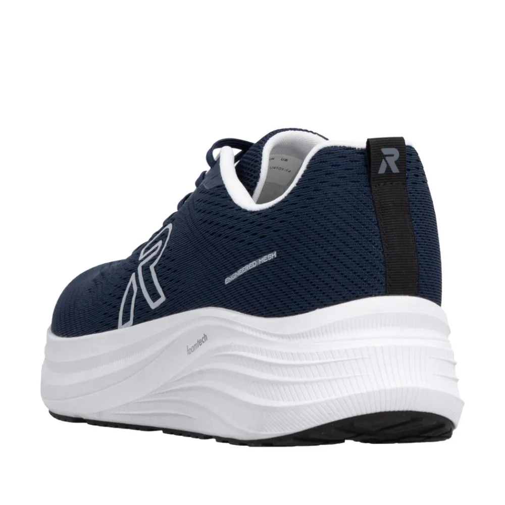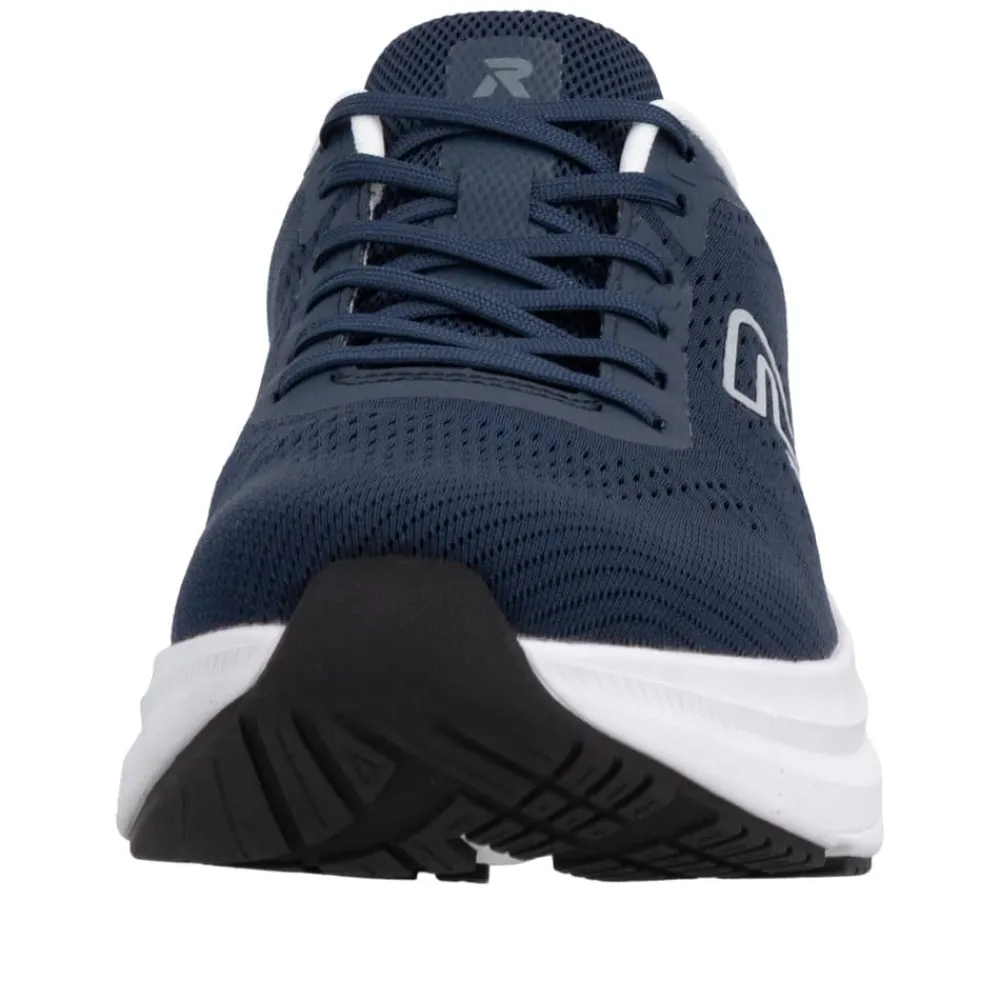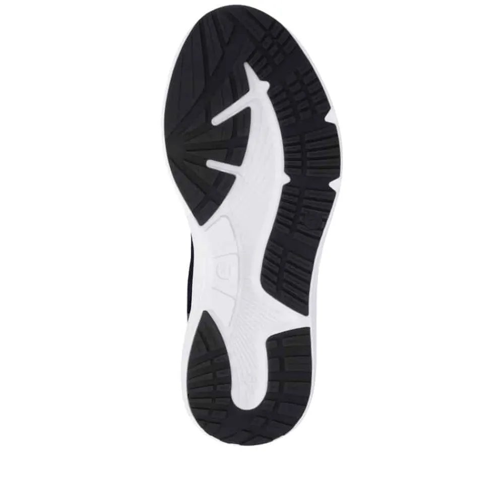 Rieker sneakers til herre i blå. Disse smarte sko med et sporty udtryk er et oplagt valg til den travle hverdag, hvor komfort og funktion er i fokus. Skoen har snørebånd, så pasformen nemt kan tilpasses efter foden. Indvendigt finder du en blød udtagelig indersål og ekstra bredde (H) som sikrer god rummelighed. Ydersålen giver øget støtte og skridsikkerhed, så skoen føles stabil dagen igennem.