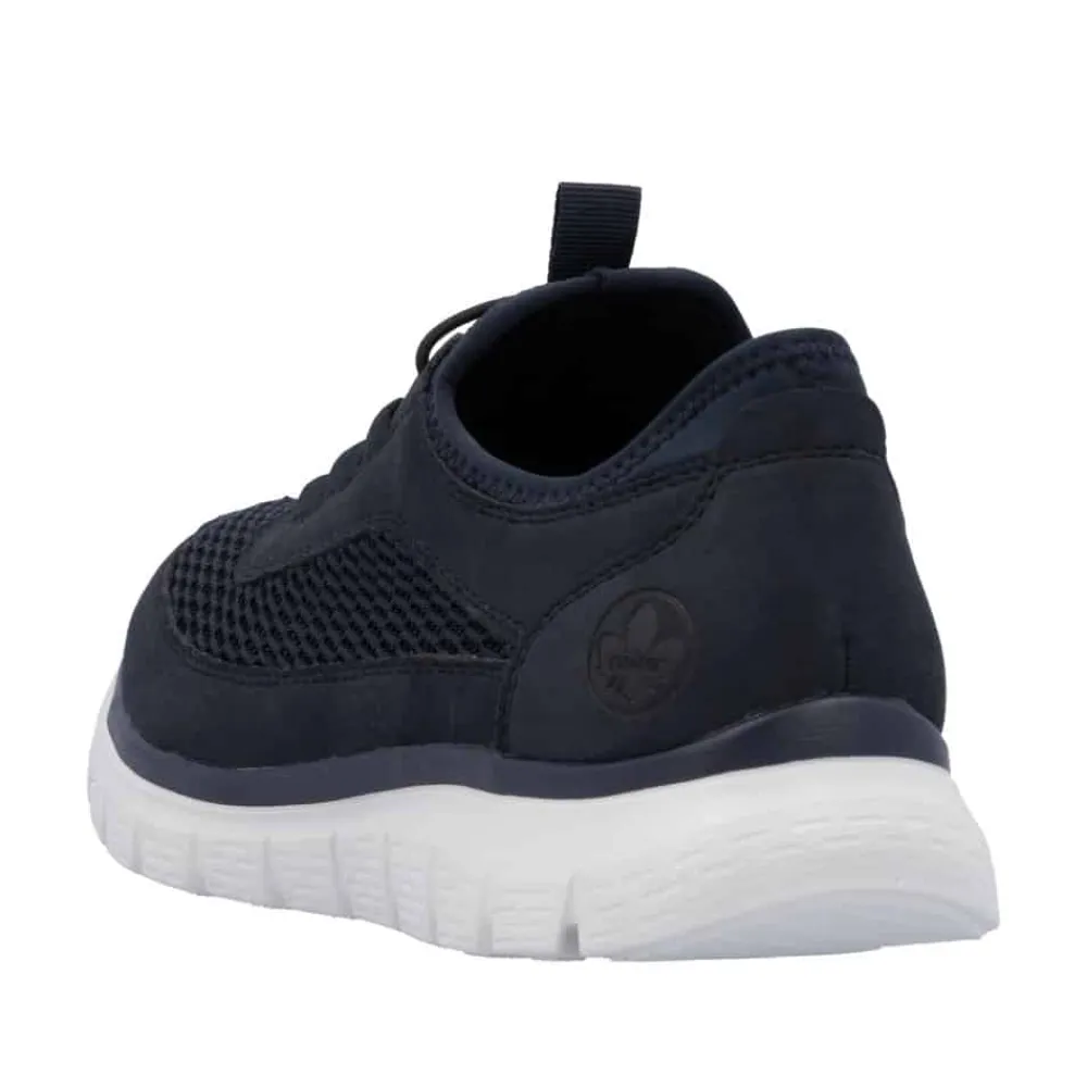 Rieker sneakers til herre i blå. Rieker har designet denne herre sneakers med fokus på funktionalitet og komfort. Skoen er nem at tage på takket være elastikken i åbningen og det smarte elastikbånd, som erstatter traditionelle snørebånd. Overdelen i åndbart mesh holder dine fødder friske, og den lette sål med Riekers velkendte stødabsorbering sørger for optimal komfort hele dagen.