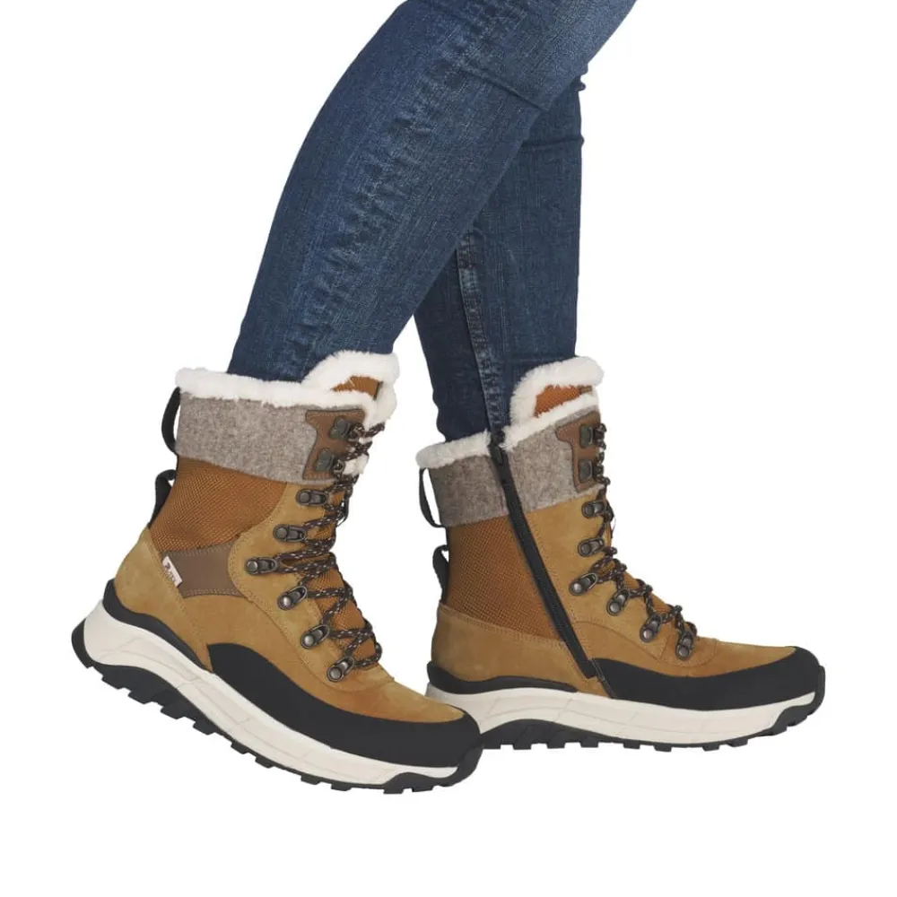 Rieker Revolution vinterstøvle til dame i brun. Disse Rieker snørestøvler til kvinder i en elegant brun farve kombinerer design og funktion, så du er klar til de kolde dage. Den praktiske kombination af snørebånd og lynlås sikrer en perfekt pasform og støtte. Med den lette og fleksible sål kan du nyde maksimal komfort hele dagen. Det vandafvisende ydermateriale med TEX-membran beskytter effektivt mod regn og sne, mens den varme termiske indersål holder fødderne dejligt lune. Den specialudviklede Fiber-Grip sål giver ekstra stabilitet, og det bløde, uldforede indre gør støvlerne til dine nye favoritter, uanset hvor vinterens eventyr fører dig hen.