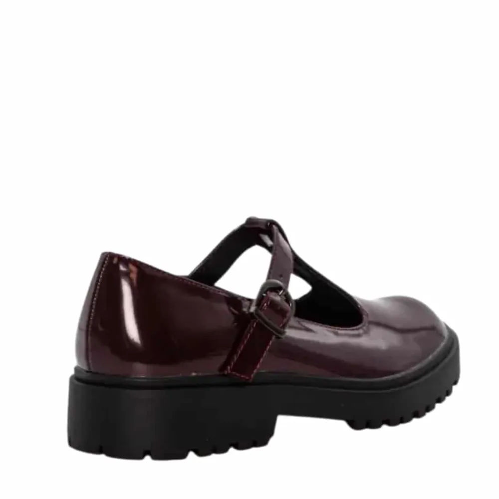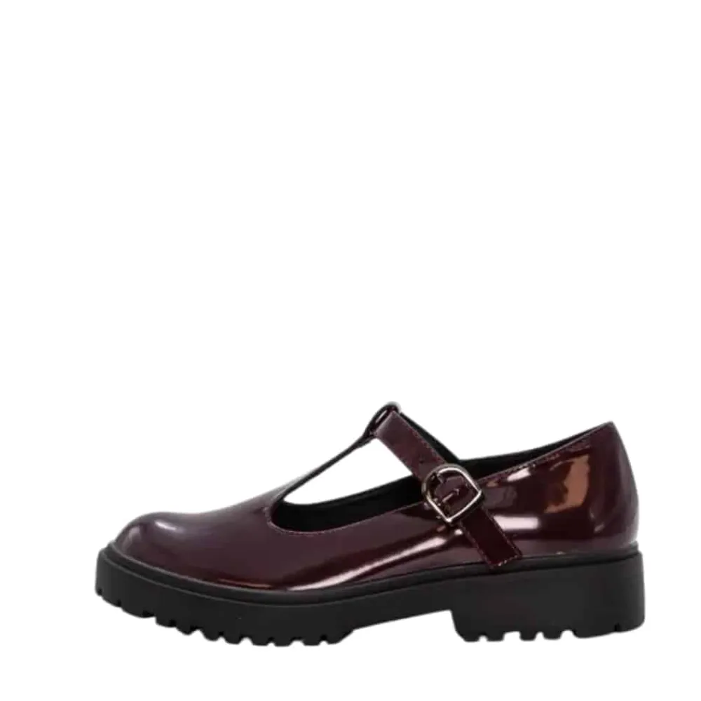 Duffy Lattarico Cinque Mary Jane sko til dame i bordeaux lak. Flot sko i bordeaux med en blank lakoverdel, der skaber et elegant og klassisk udtryk. Over vristen finder du en rem med spænde, der let kan justeres, så skoen sidder perfekt. Den bløde sål indvendigt giver en behagelig komfort, mens ydersålen med mønster og en højde på ca. 4 cm giver et smukt løft og gør skoen komfortabel at bruge dagen igennem