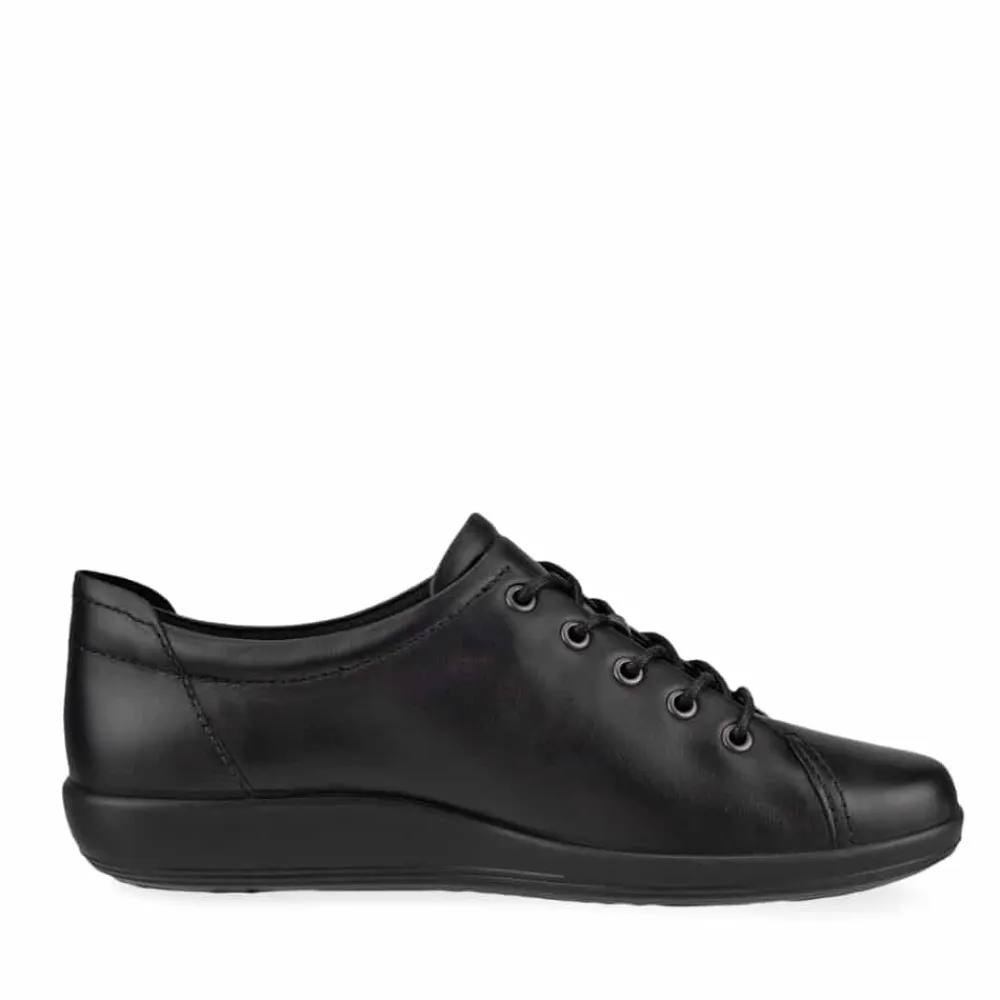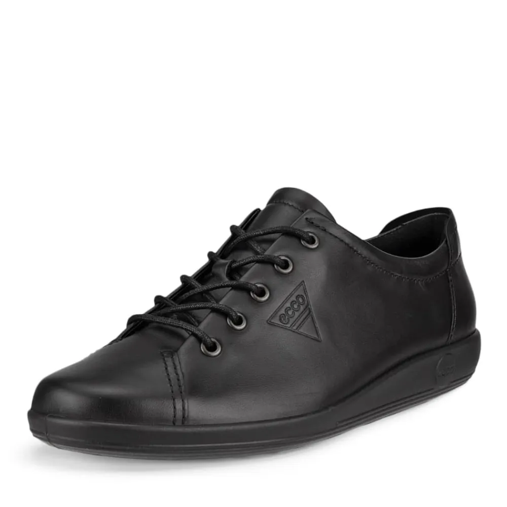 Ecco Soft 2.0 Tie sko til dame i sort. ECCO SOFT 2.0 er en snøresko til gåture lavet af førsteklasses fuldkornslæder, der hylder ECCOs skandinaviske arv. Den har en retro silhuet og et opdateret look, der passer til både chikke og afslappede outfits. Overdelen er fremstillet af rige lædermaterialer fra vores egne garverier uden brug af krom. Den bløde tekstilforing sikrer åndbar komfort, mens den aftagelige mikrofiber-indlægssål med ECFS™ teknologi tilføjer ekstra komfort. ECCO SOFT 2.0 er den perfekte blanding af stil og komfort med en skandinavisk retro følelse.