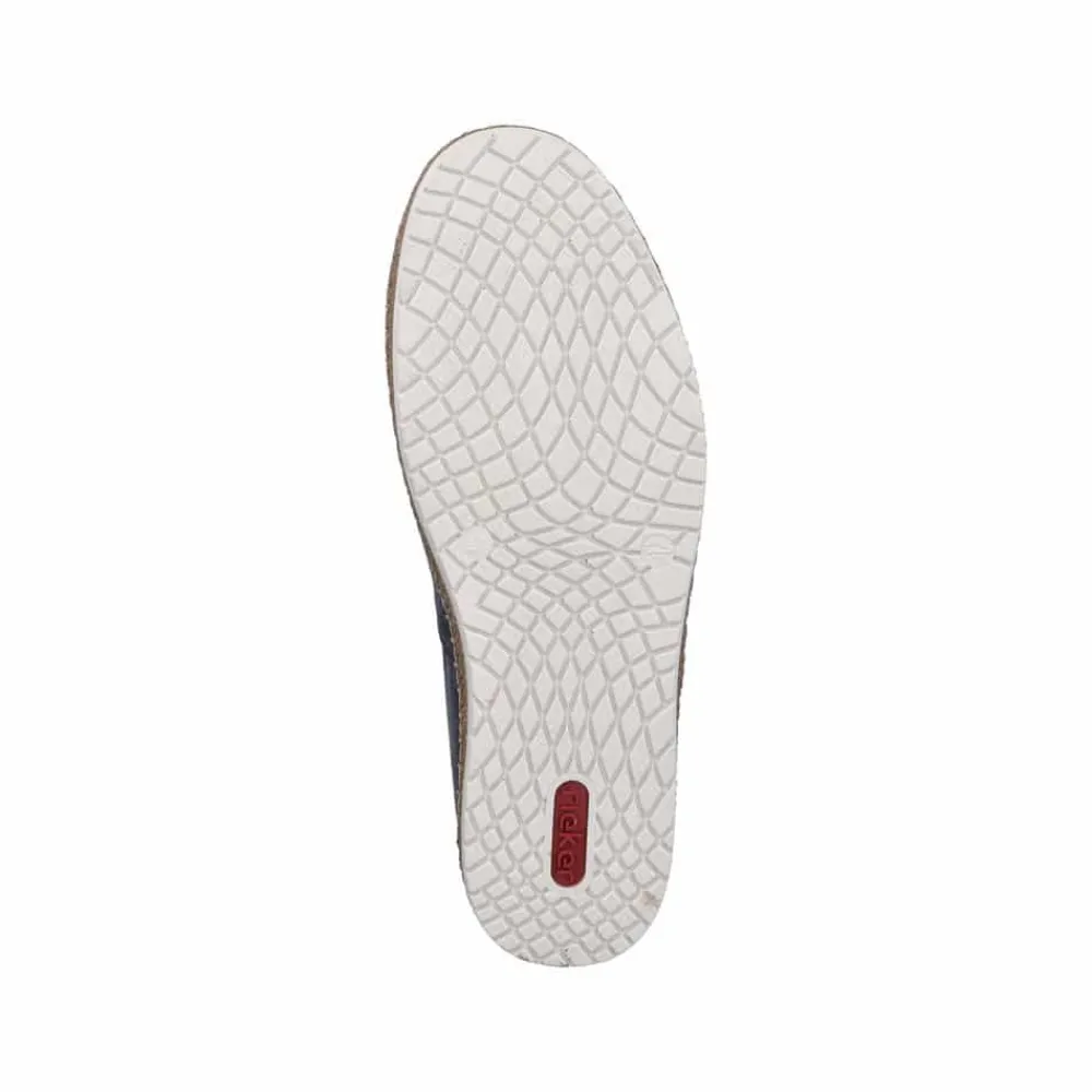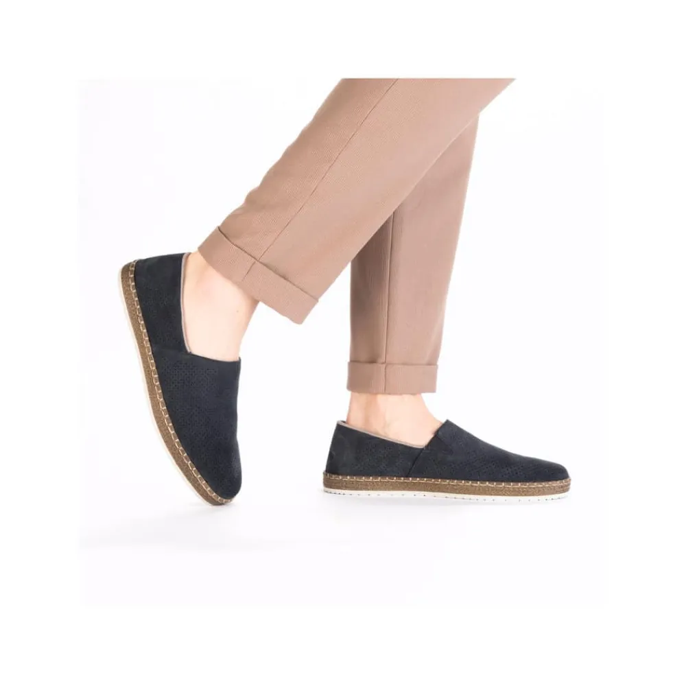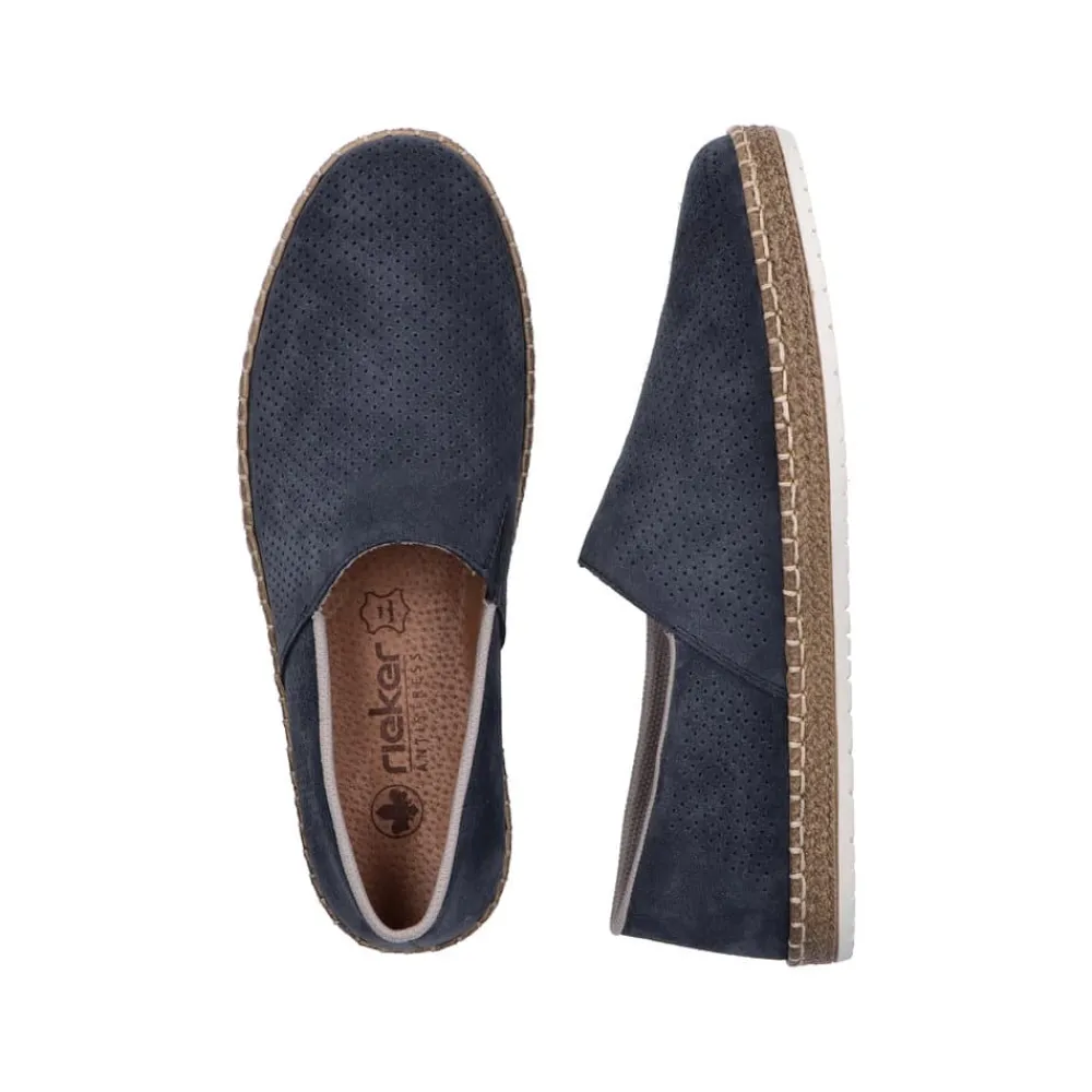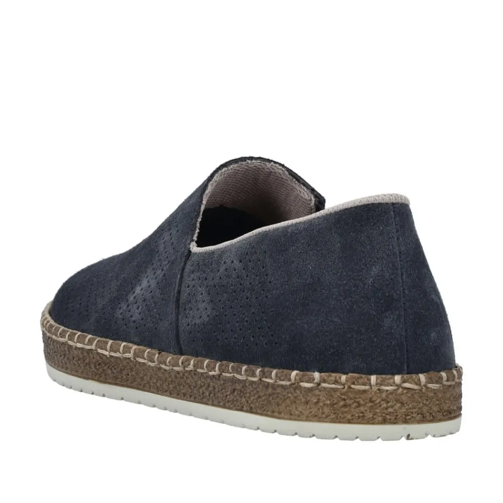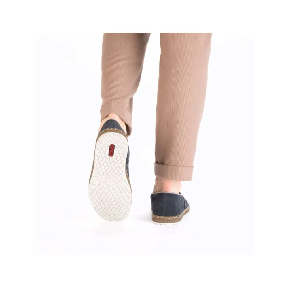 Rieker hyttesko til herre i blå. Oplev enestående komfort med disse Rieker-hytte til herrer i en elegant grå nuance. Fremstillet i slidstærkt ruskind og med en fleksibel konstruktion, der tilpasser sig dine fødder. Åbningen gør det nemt at tage dem på, mens den stødabsorberende PU-sål og den bløde læder-dæksål sørger for komfort dagen lang. Med komfortvidde G ½ får dine fødder ekstra bevægelsesfrihed med ekstra plads i forfoden.
