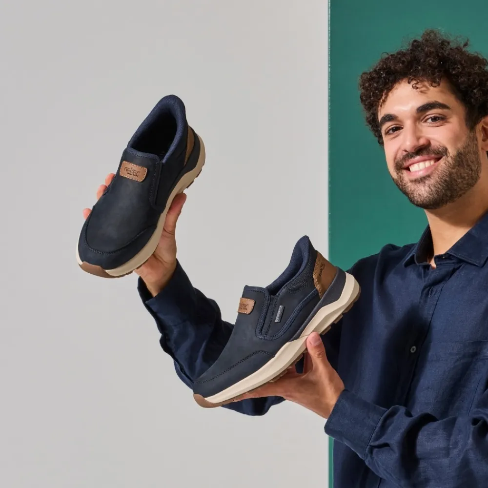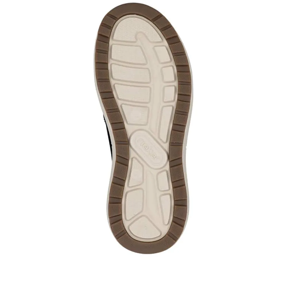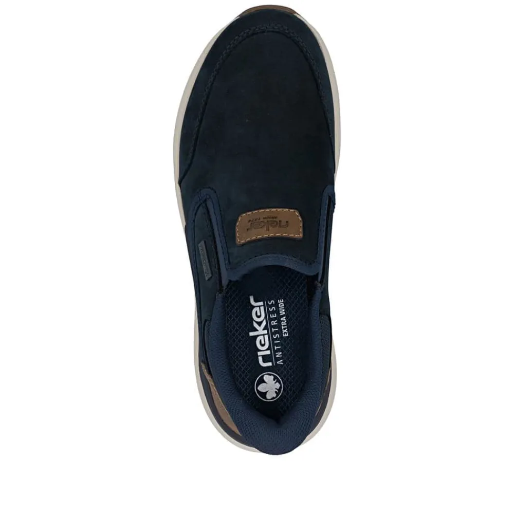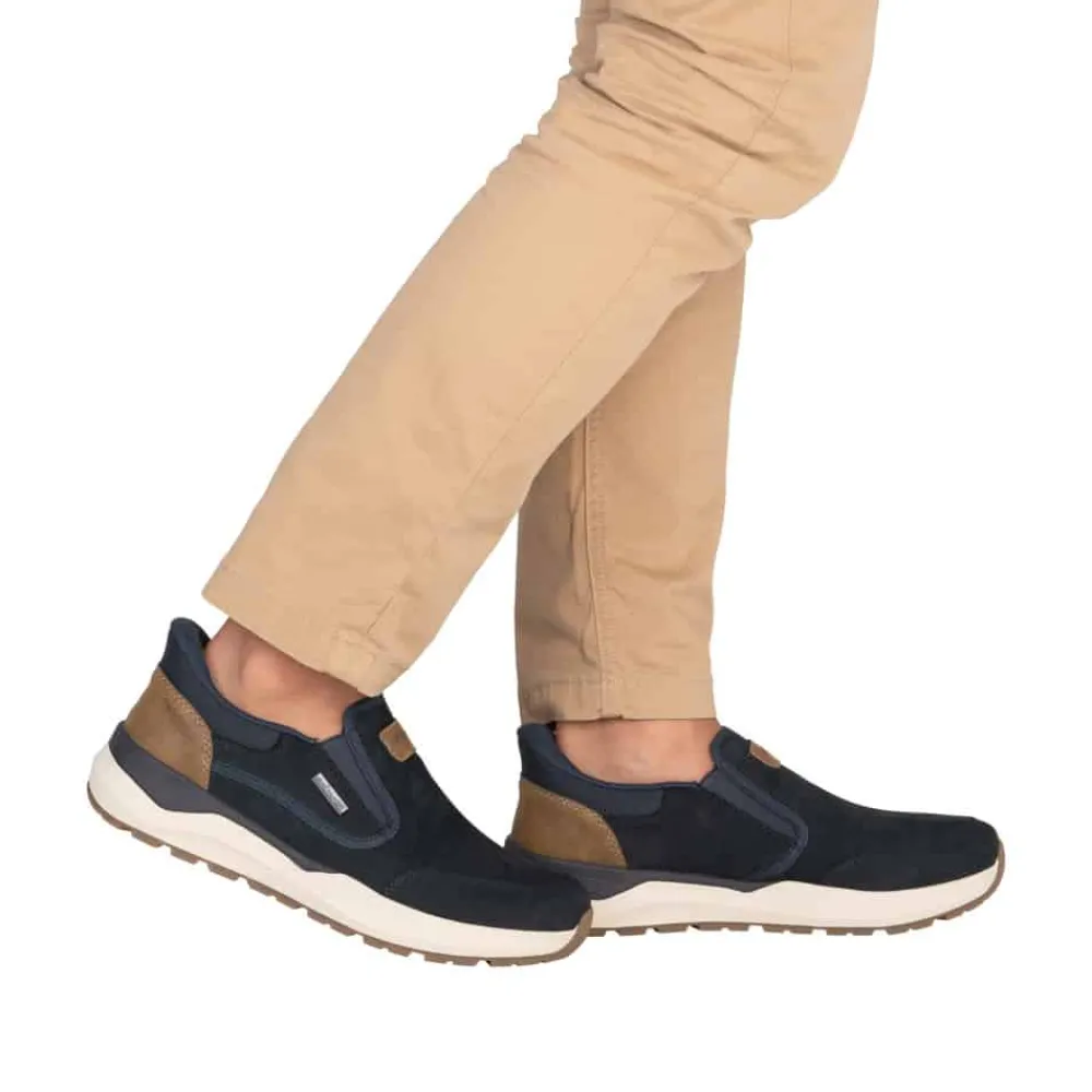 Rieker Ready 2 Go hyttesko til herre i blå. Disse smarte hyttesko med en flot skindoverdel og funktionelle detaljer gør skoen praktisk til hverdagen. Skoen er udstyret med Ready 2 Go og en fast hælkappe, så du nemt kan tage skoen på uden brug af hænder. Med Rieker-Tex er skoen kraftigt vandafvisende og velegnet til skiftende vejr. Indvendigt finder du en blød og udtagelig sål samt ekstra bredde (H), som giver god komfort og rummelighed til foden. Ydersålen har mønster, der giver øget stødabsorbering og skridsikkerhed.