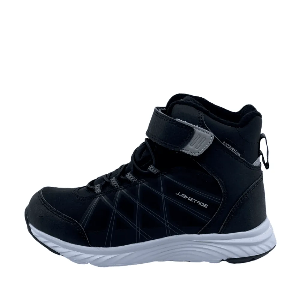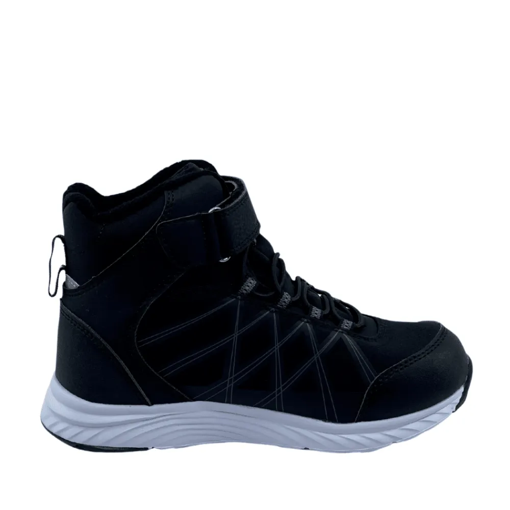 Kompis støvle i sort til børn. Vores lækre varmforet Kompis støvle kommer i en klassisk sort farve, med fine grå/hvide detaljer. Modellen justerbar velcro rem, samt elastik snøre som gør det nemt for børnene, selv at kunne få den af og på. Endnu en fordel ved denne støvle er at den er vandtæt og har udtagelige såler.