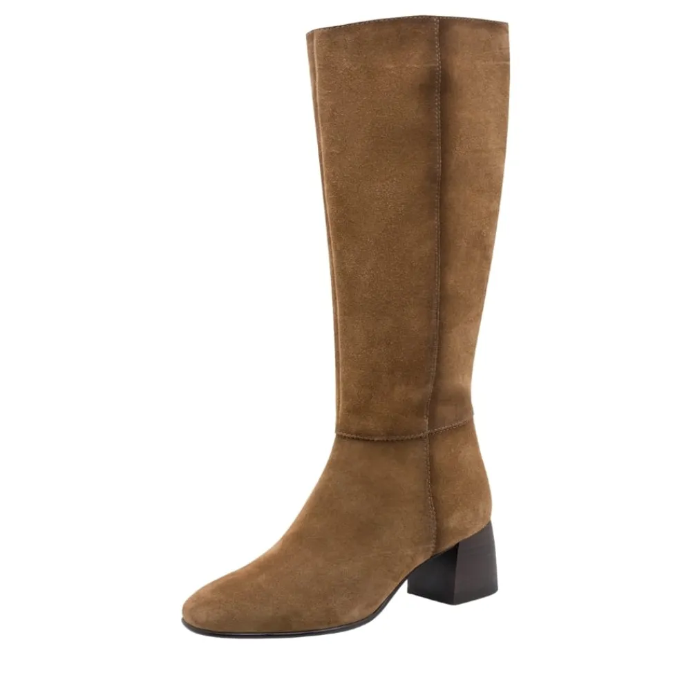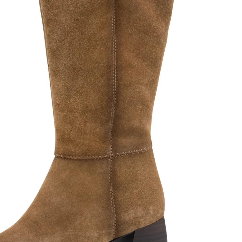 Tamaris lang støvle til dame i brun. Klassisk brun støvle med langt skaft i blødt ruskind, der kombinerer tidløs enkelthed med et moderne look. Lynlåsen på indersiden og elastikken giver en fleksibel pasform og gør modellen nem at tage af og på. Indvendigt sørger den bløde indersål med Touch It teknologi for, at skoen former sig efter foden og giver optimal komfort. Den cirka 6 cm høje blokhæl er udstyret med Anti-Slide og Anti-Shock, som giver øget skridsikkerhed og en behagelig gang.