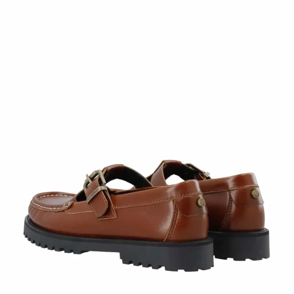 Cashott Caslena Mary Jane sko til dame i cognac. Disse moderne sko i cognacfarvet læder kombinerer klassisk stil med fine detaljer. Den praktiske spændelukning over forfoden gør det nemt at tage skoen på og tilpasse pasformen. Indvendigt finder du en blød sål, der sikrer god komfort hele dagen. Den solide gummisål på cirka 3 cm giver dig stabilitet og øget skridsikkerhed.