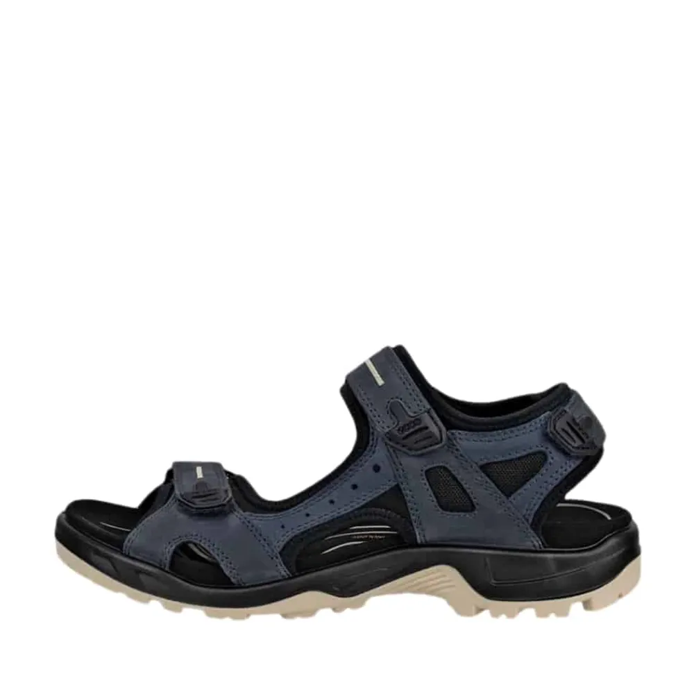 Ecco Offroad sandal til herre i blå. Få fat i disse lette og støttende Ecco sandaler, der leverer enestående komfort, uanset om du går på byens gader eller udforsker naturen. Den bløde overdel i nubucklæder med sidelukning, 3-punkts justerbarhed og neoprenforing sikrer en behagelig og blød pasform. En formstøbt EVA-fodseng beklædt med blød mikrofiber giver fremragende stødabsorbering og uovertruffen stabilitet. Med en let sål, der udnytter vores innovative ECCO FLUIDFORM™ Direct Comfort teknologi, får du langvarig stødabsorbering og fleksibilitet. ECCO RECEPTOR® teknologien sikrer fortræffelig stabilitet og dynamisk støtte, fra du sætter foden i jorden, til dine tæer slipper underlaget. Endelig giver den slidstærke og skridsikre gummiydersål dig enestående greb i varieret terræn.