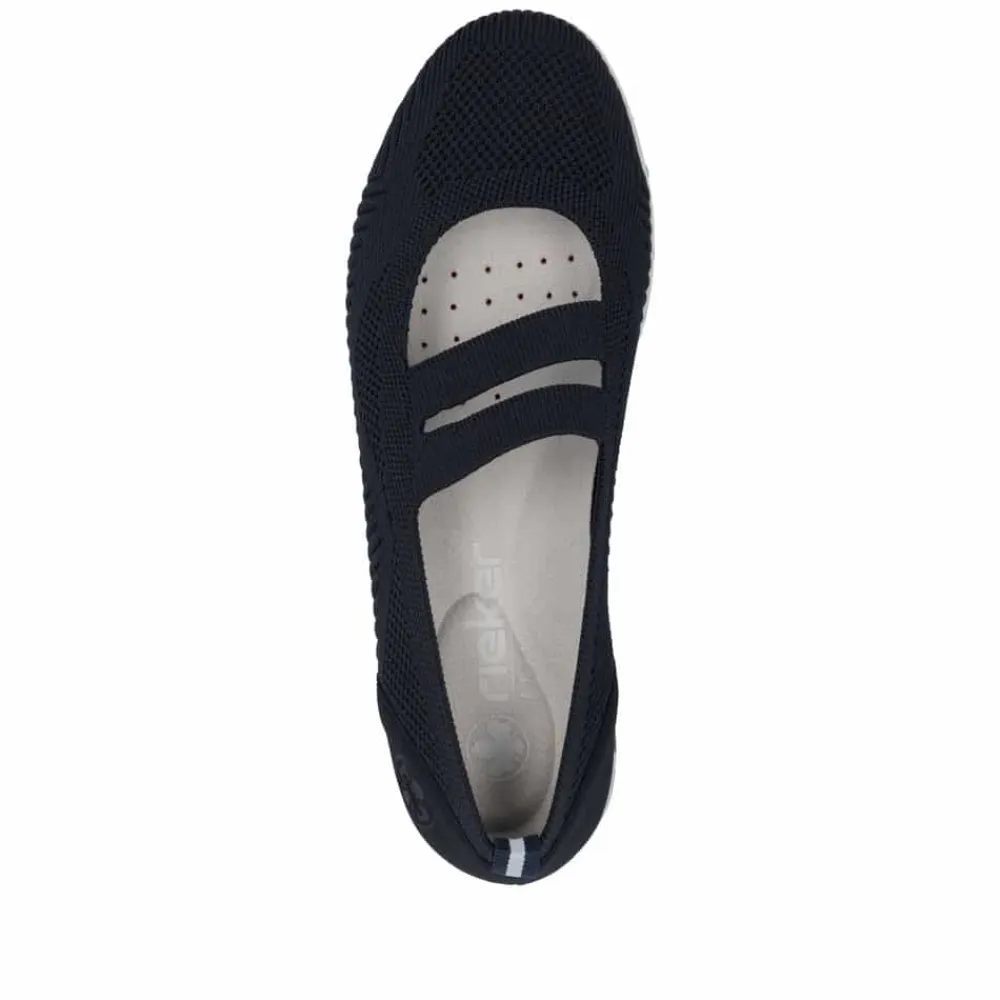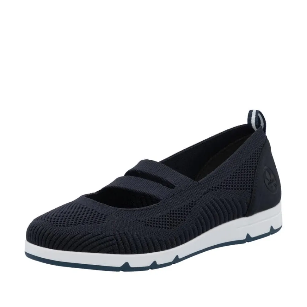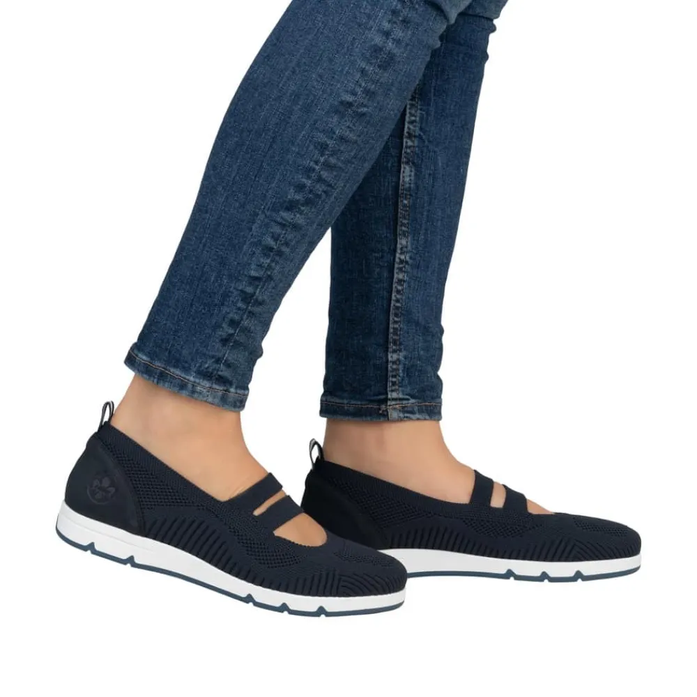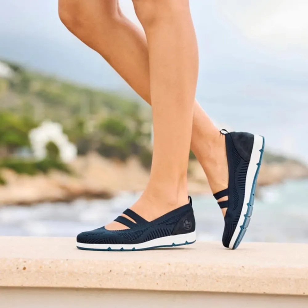 Rieker sko til dame i blå. Få den ultimative komfort med disse Rieker sko i blå til kvinder. Den bløde og fleksible TR-gummisål kombineret med elastikken over vristen sikrer en perfekt pasform, mens de udtagelige Rieker soft såler giver ekstra støtte. En let og åndbar sko, der er utrolig nem at tage på og af – ideel til både hverdag og afslapning.