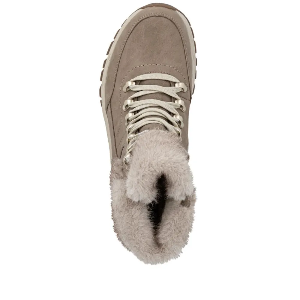 Rieker støvle til dame i beige. Flot og praktisk støvle i skind, der kombinerer stil med høj komfort. Støvlen har snørebånd foran og en funktionel lynlås i siden, som gør den nem at tage af og på, samtidig med at pasformen kan justeres. Indvendigt finder du en blød udtagelig sål og en varm foring, der holder fødderne lune hele dagen. Rieker-Tex gør støvlen kraftig vandafvisende, mens den mønstrede ydersål giver både øget stødabsorbering og skridsikkerhed.