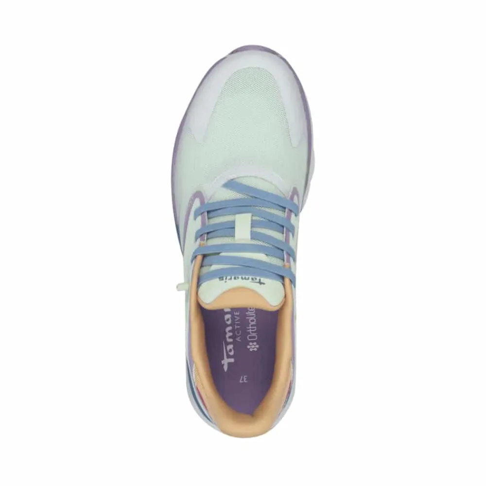 Tamaris Nowana slip on sneakers til dame i flot kombination af farver. Tamaris Nowana Slip-on sneakers kombinerer stil og funktionalitet på en elegant måde. Den elastiske snøring gør det nemt at tage skoene på uden brug af skohorn, og den faste hælkappe giver en stabil pasform. Overdelen i åndbart mesh sikrer ventilation og komfort, mens OrthoLite®-indersålen bidrager til en frisk fornemmelse hele dagen. Den unikke bølgedesignede ydersål tilføjer ikke kun et feminint udtryk, men giver også en fjedrende lethed i hvert skridt. De moderne farvekombinationer gør denne sneakers til en alsidig model, der passer til både sporty og feminine looks. Perfekt til hverdagsbrug, lange gåture eller afslappede dage i byen.