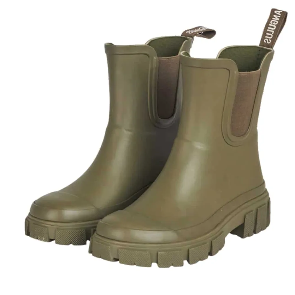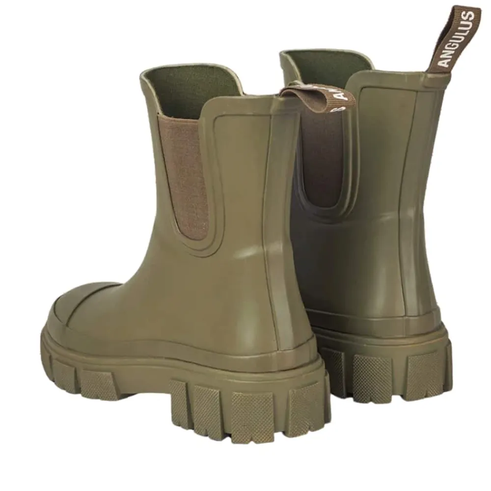 Angulus gummistøvle til dame i grøn. Oplev den perfekte kombination af stil og funktionalitet med denne bløde og fleksible gummistøvle. Designet med en chunky track-sål, der giver dig både komfort og stabilitet, er denne støvle ideel til enhver udfordring, uanset vejret. De praktiske elastikkiler i siderne og den sporty logorem bagtil gør det nemt at tage støvlen af og på. Med en skridsikker sål af naturgummi og et blødt let foer i bomuldsblanding er dine fødder sikret maksimal komfort. Fremstillet af vandtæt naturgummi og helt PVC-fri, er denne støvle både 100% vandtæt og miljøvenlig.