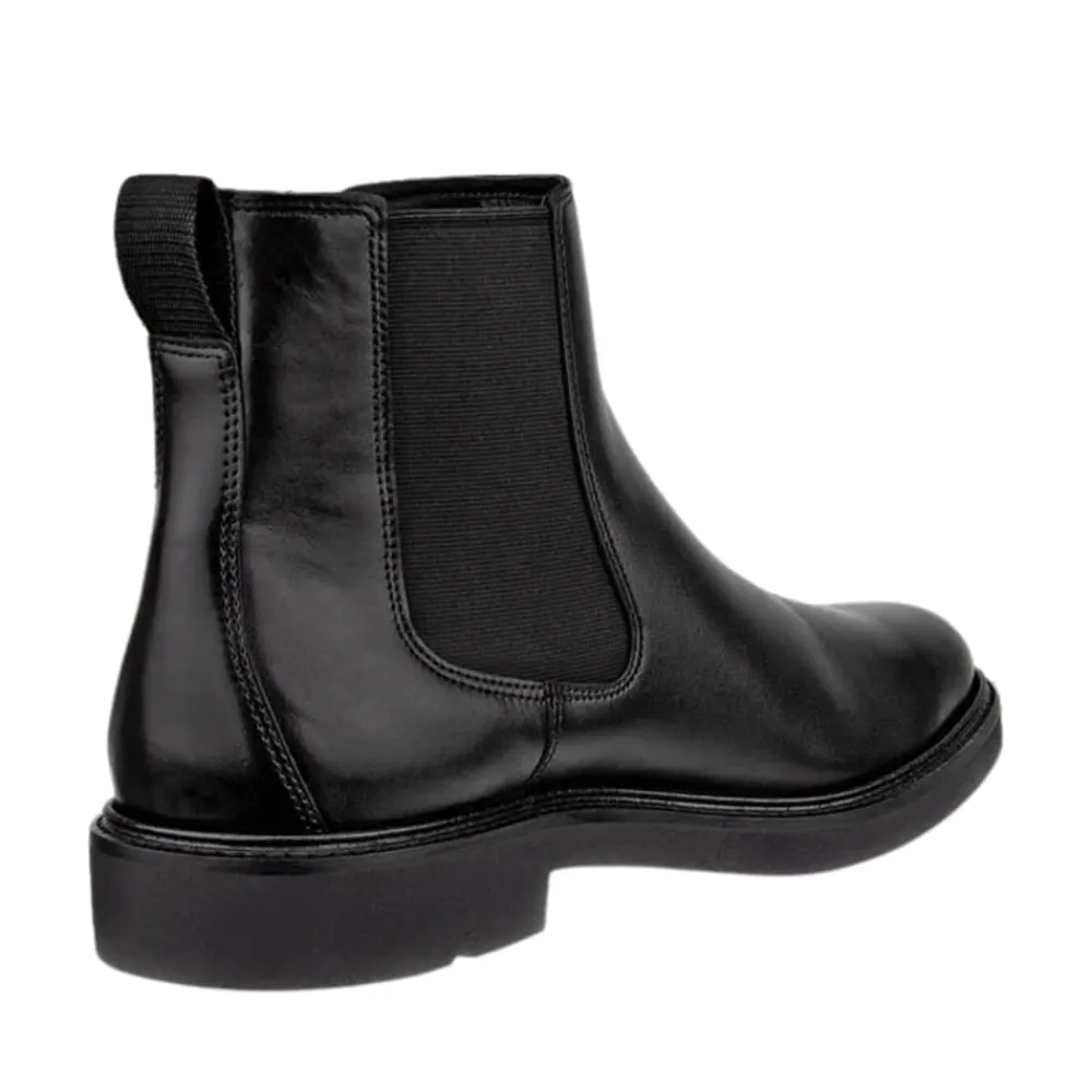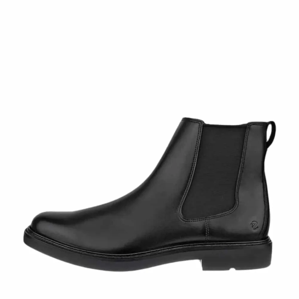 Ecco Metropole London Chelsea støvle til herre i sort. Denne støvle giver en opgradering til dine pæne-casual outfits og byder på ekstra vidde for en behagelig pasform. Den er udstyret med Ecco’s innovative FLUIDFORM™ sål, som sikrer, at du kan gå komfortabelt hele dagen. Herrestøvlen er fremstillet af kvalitetslæder fra Ecco og har klassisk Chelsea-elastik i siderne, der gør den nem at tage på. Med let tekstilfor og en udtagelig indlægssål i læder, der giver mulighed for ekstra vidde, får du en rummelig og ultrabehagelig pasform. Derudover byder støvlen på Ecco’s banebrydende PHORENE™ mellem sål, som er ultralet og blød med robust stødabsorbering, så du kan bevæge dig rundt i byen hele dagen med maksimal komfort.