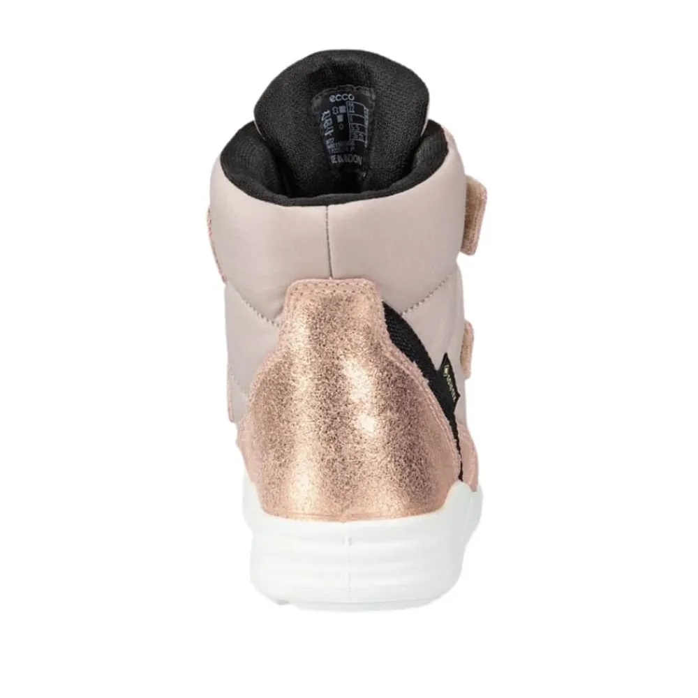 Ecco Urban Mini High vinterstøvle børn i rosa er den ideelle følgesvend til de kolde og våde måneder. De smarte velcroremme gør det let og hurtigt at træde i støvlerne, så du kan nå frem til dit frikvarter i en fart, samtidig med at de giver en tætsluttende pasform. Takket være GoreTEX kan du se frem til tørre og åndbare fødder, uanset vejret. Ecco’s børnestøvle er den perfekte kombination af stil, funktionalitet og beskyttelse mod vinterens elementer med varm foret på indersiden og på indlægs sålerne. Gå gennem vinteren med tillid og komfort i dette pålidelige og elegante fodtøj fra Ecco.