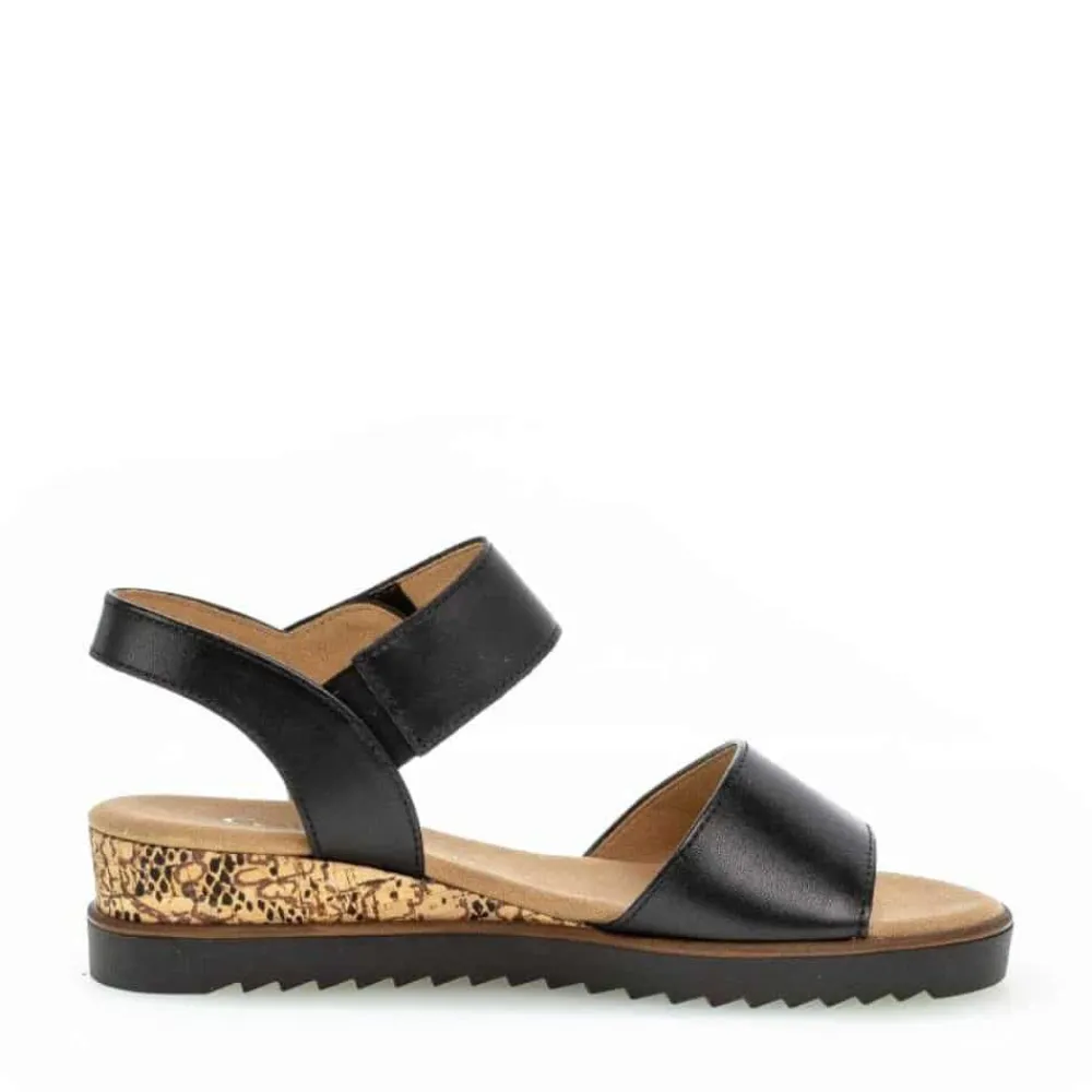 Gabor sandal til dame i sort. En komfortabel sandal fra Gabor, der præsenterer en blød skindoverdel, der tilbyder fremragende komfort og støtte til dine fødder. Denne model er udstyret med praktisk velcro-lukning, hvilket gør det let og hurtigt at tage sandalen af og på. Med en behagelig blød sål og en lille kilehæl på cirka 4 cm, giver denne sandal optimal støtte til din fod.