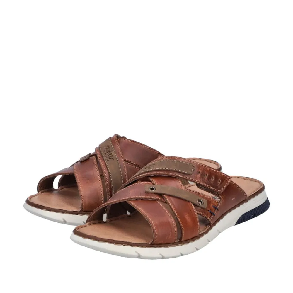 Rieker sandal til herre i brun. Disse kastanjebrune Rieker sandaler til mænd tilbyder ikke kun en stilfuld påklædning, men også en uovertruffen komfort til hverdagen. Takket være den praktiske velcrolukning kan skoene let tages på. Deres åbne design og lette, støddæmpende sål sikrer kontinuerlig velvære. Med en ekstra blød indersål og en foring af åbencellet materiale, der effektivt absorberer fugt, giver disse sandaler dine fødder den bevægelsesfrihed og åndbarhed, de fortjener, hvilket gør dem ideelle til varme dage. Oplev en ny dimension af både stil og komfort med disse sandaler.