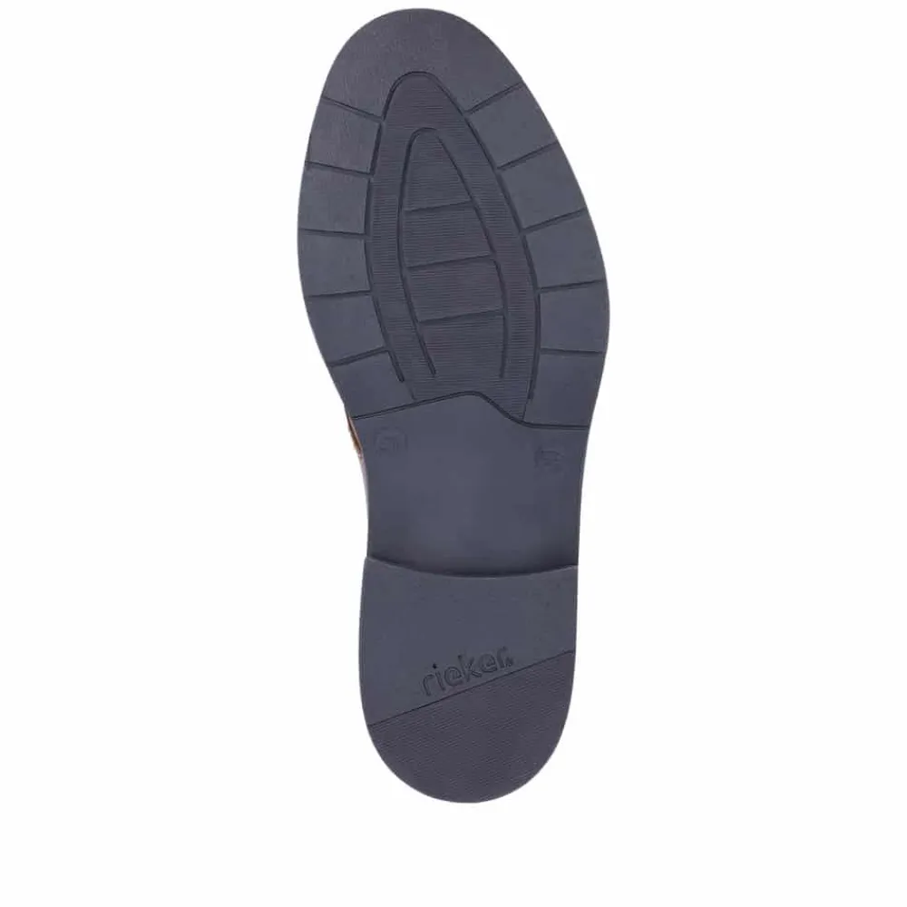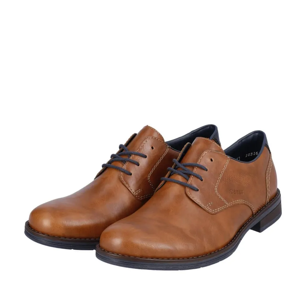 Rieker sko i cognac/brun til herre. Ekstra plads til dine fødder! Disse dejlige nougatbrune snøresko fra Rieker vil du næsten ikke kunne undvære. Snørebåndene sikrer samtidig, at skoen altid sidder perfekt på dine fødder. Med den holdbare sål kan du tage hvert skridt med fuld tillid. Den bløde og åndbare læderindlægssål giver både optimal komfort og intelligent funktionalitet. Modellen er skabt med en komfortabel bredde i størrelse G 1/2. Så er der intet, der kan holde dig tilbage fra lange gåture!