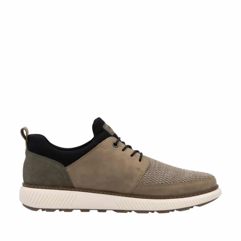 Rieker sneakers til herre i beige. Smart sneakers i beige med flotte detaljer og elastik foran, som giver en god og behagelig pasform. Indvendigt er skoen udstyret med en blød og udtagelig indersål med ekstra bredde H, som giver god rummelighed og komfort hele dagen. Ydersålen er solid og har et mønster, der giver øget skridsikkerhed. Samtidig bidrager de stødabsorberende egenskaber til god komfort dagen igennem.