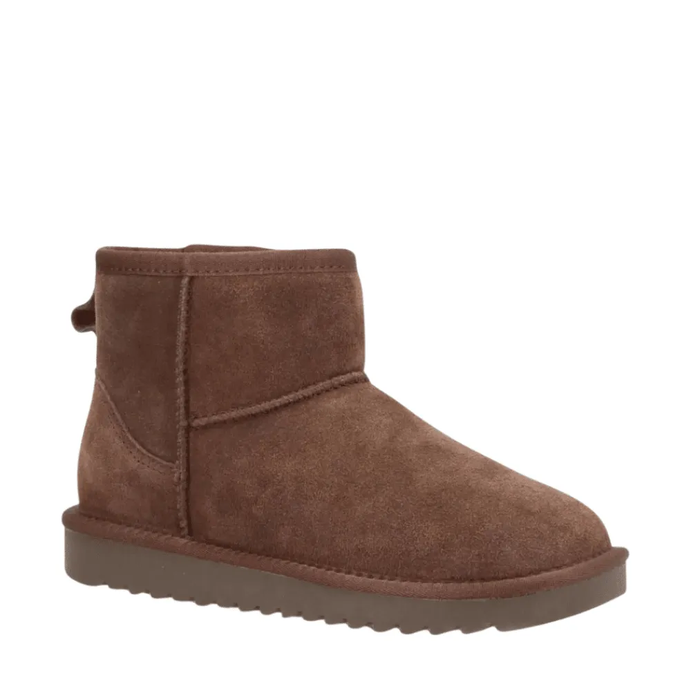 Shoedesign Copenhagen Elina bamsestøvle til dame i en lækker mørkebrun farve. Den perfekte bamsestøvle som er uundværlig for den moderne kvinde, der værdsætter komforten. Fremstillet af blødt, men holdbart ruskind og med et varmt foer, er du garanteret at holde varmen hele vinteren. Den trendy støvle kombinerer på en fantastisk måde det rå og feminine, og bliver hurtigt en favorit i din garderobe.