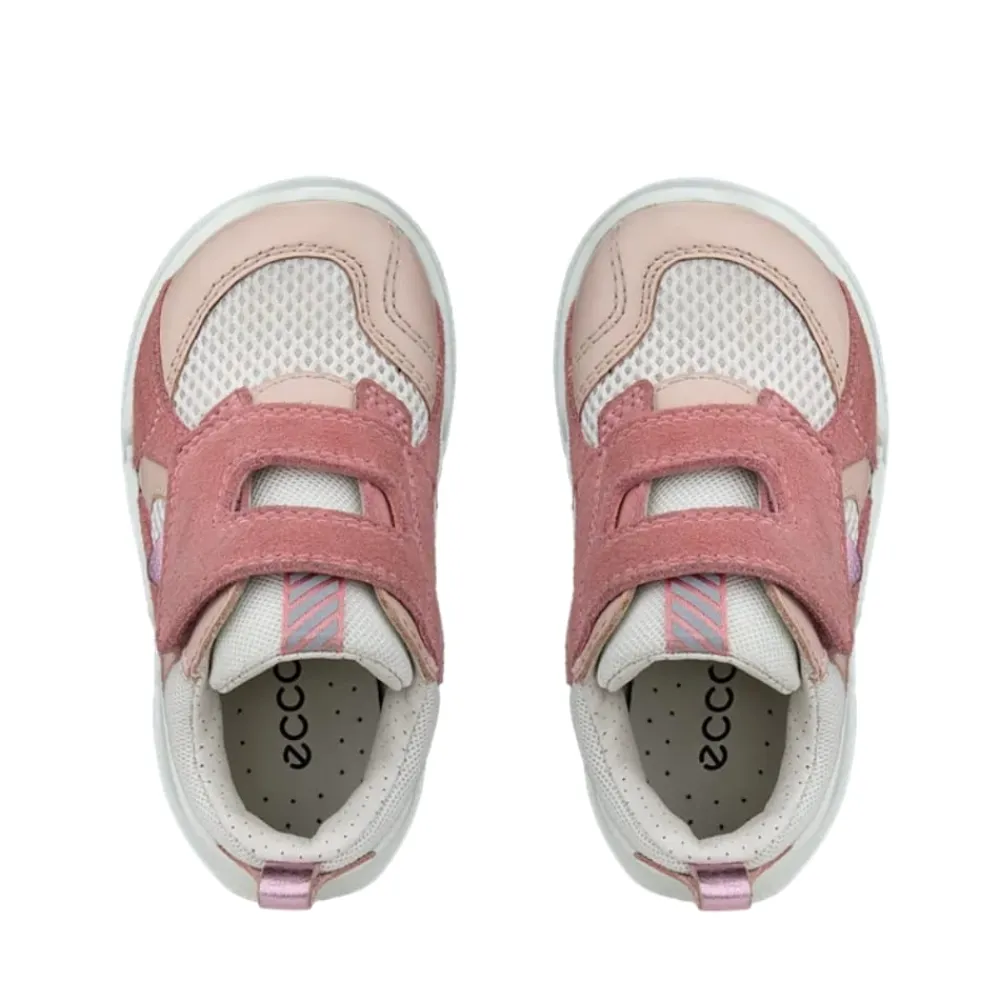 Ecco Biom 2.2 Infant sneakers til børn i rosa farvekombination. Stilfuld sneakers i rosa med fede detaljer, ideel til aktive børn. Den smarte velcrolukning gør det nemt at tage skoen af og på, samtidig med at den sikrer en god pasform. Skoen er fremstillet af læder og har en blød, udtagelig indersål med Ecco Phorene™, som giver fremragende stødabsorbering. Biom Natural Motion®-teknologien understøtter fodens naturlige bevægelse og sikrer høj komfort hele dagen.