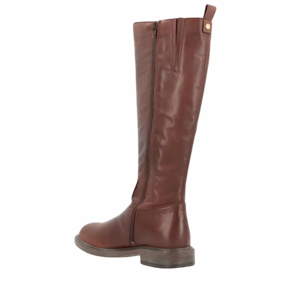 Shoedesign Copenhagen Montana lang støvle til dame i mørkebrun. Denne stilrene og moderne støvle er det perfekte valg, hvis du ønsker en elegant støvle med god komfort. Støvlen er lavet af 100% skind og har en praktisk lynlås på indersiden, der gør den nem at tage på og af. Den lille elastik i skaftet sikrer en behagelig pasform, uden at gå på kompromis med det enkle design. Ydersålen har et godt mønster, som giver ekstra skridsikkerhed, så støvlen er både trendy og funktionel.
