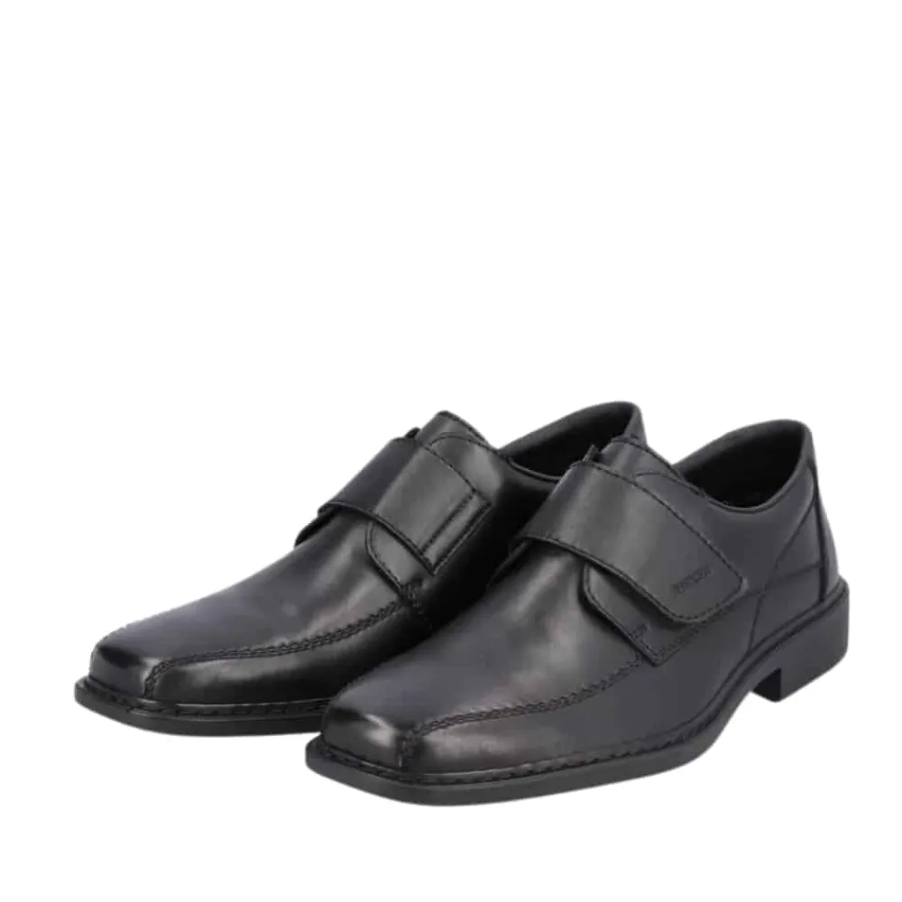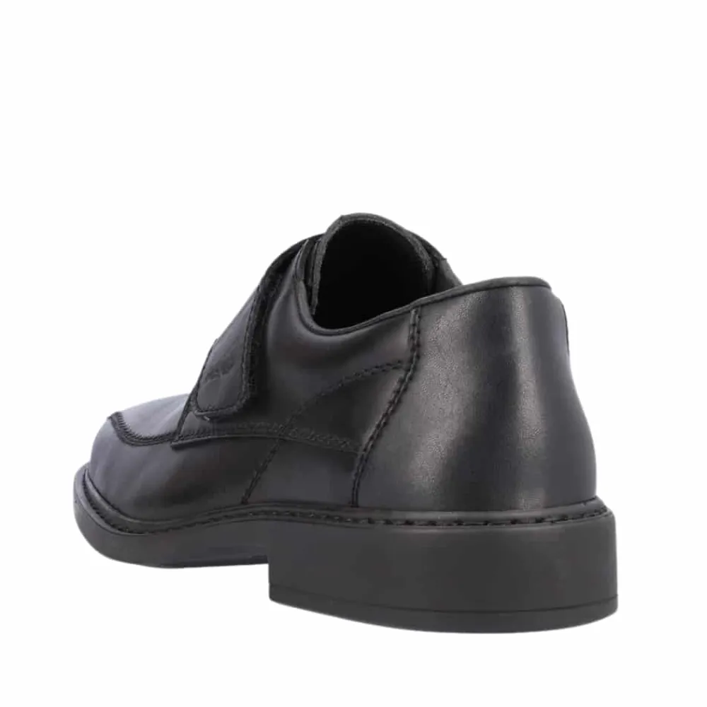 Rieker sko til herre i sort. Disse natte sorte Rieker slip-on sko til mænd lavet af glat læder vil du slet ikke tage af igen. Takket være en praktisk velcrolukning er modellen lynhurtig at tage på. Den støddæmpende og lette sål giver vedvarende velvære – selv på lange dage. Derudover sørger den ekstra bløde indersål for ekstra komfort. Skoen er designet med ekstra bredde i størrelse H. Fodtøjet er foret med åbencellet materiale, der er meget åndbart og effektivt absorberer fugt, hvilket gør det perfekt til varmere temperaturer. Bare glid ned i dem og nyd – med Rieker!