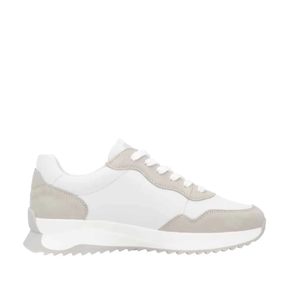 Rieker sneakers til dame i hvid. Disse sneakers er fremstillet med en overdel af højkvalitets glat læder og er skabt til at forene stil og funktionalitet. Den robuste og skridsikre TR-sål sikrer et solidt greb, hvilket gør dem ideelle til daglig brug. Med polstrede, stødabsorberende og udtagelige indlægssåler får du optimal komfort og fleksibilitet ved hvert skridt. Indvendigt er skoene foret med åndbart og let Microvelour-Drysport-materiale, som holder dine fødder friske og behagelige hele dagen. Den klassiske snørelukning giver en god pasform, mens det elegante design gør skoene velegnede til både afslappede og aktive dage.