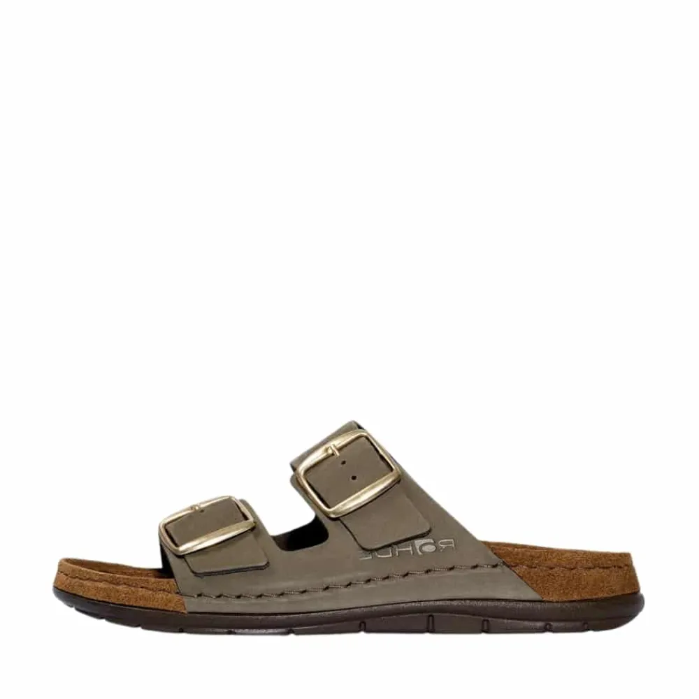 Rohde Easys N°42 sandal i oliven til dame. En moderne sandal der giver en behagelig og blød oplevelse med sin memory-fodseng. Sandalen sørger for kontinuerlig komfort, mens de justerbare spænder sikrer, at du kan tilpasse pasformen til din fod. Overdelen er lavet af højkvalitetslæder, hvilket tilføjer et eksklusivt og unikt udseende. Indersålen i ruskind er både åndbar og robust, hvilket gør den svedresistent, mens sålen i PU-materiale giver fremragende stødabsorbering, er let og skridsikker uden at efterlade mærker. Memory-fodsengen indeholder et let memory-gelindlæg, der understøtter naturlige bevægelser, fordeler trykket og giver ekstra støtte og komfort til foden. Sandalens bredde er G, hvilket betyder høj bærekomfort og en god pasform til mange typer fødder.
