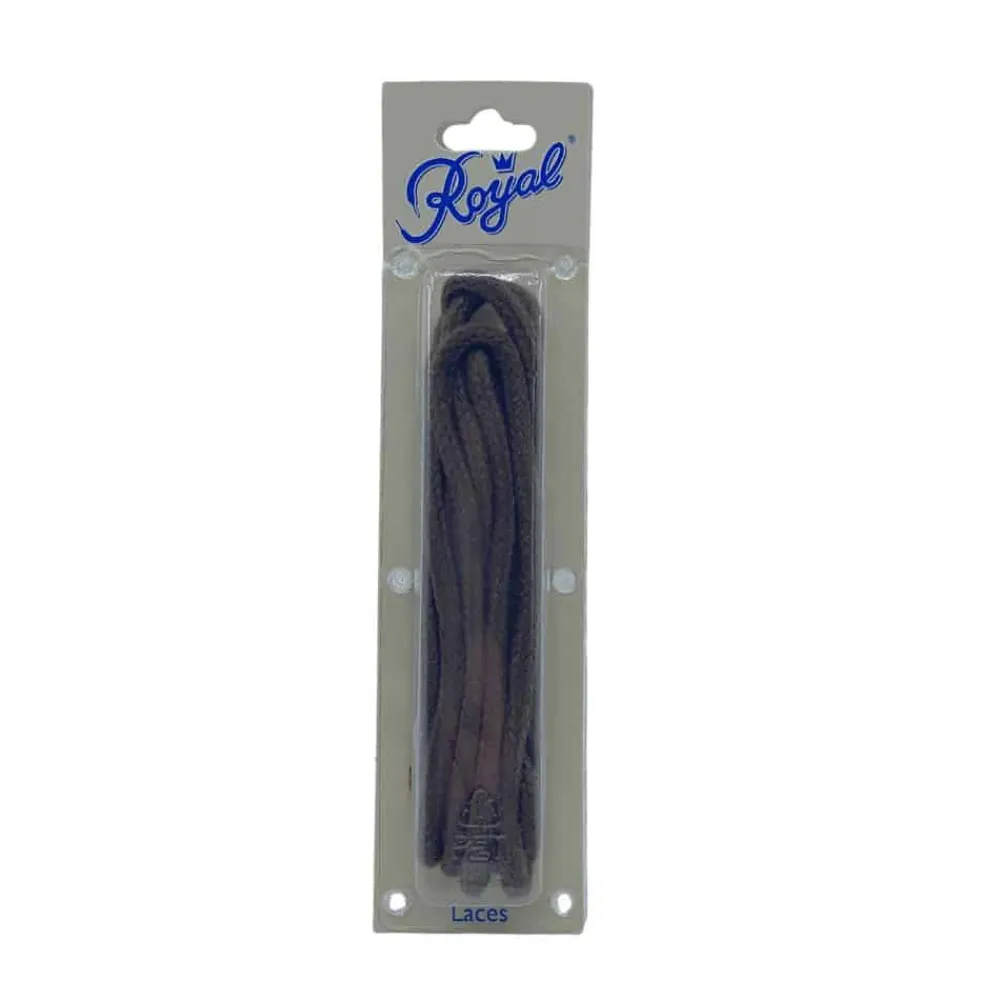 Royal runde snørebånd i brun, der måler ca 65 cm. Disse snørebånd er designet med omhu og med en længde på 65 cm er disse snørebånd ideelle til sko med omkring 3 huller. Den nøjagtige længde giver dig mulighed for at snøre dine sko på en stilfuld måde, samtidig med at de forbliver sikre og komfortable hele dagen. Snørebåndet er fremstillet af holdbare materialer, der sikrer langvarig brug og modstår slid. Den runde form giver et klassisk udseende og den dybe brune farve tilføjer varme og karakter til dine sko.