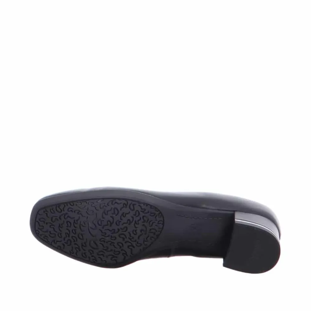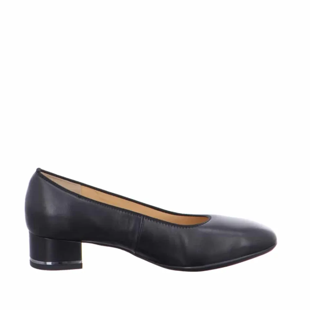12-11838 Ara Pumps Dame Sort. Modellen er en klassisk sort pump på en lav hæl. Skoen har high soft såler og en god pasform.