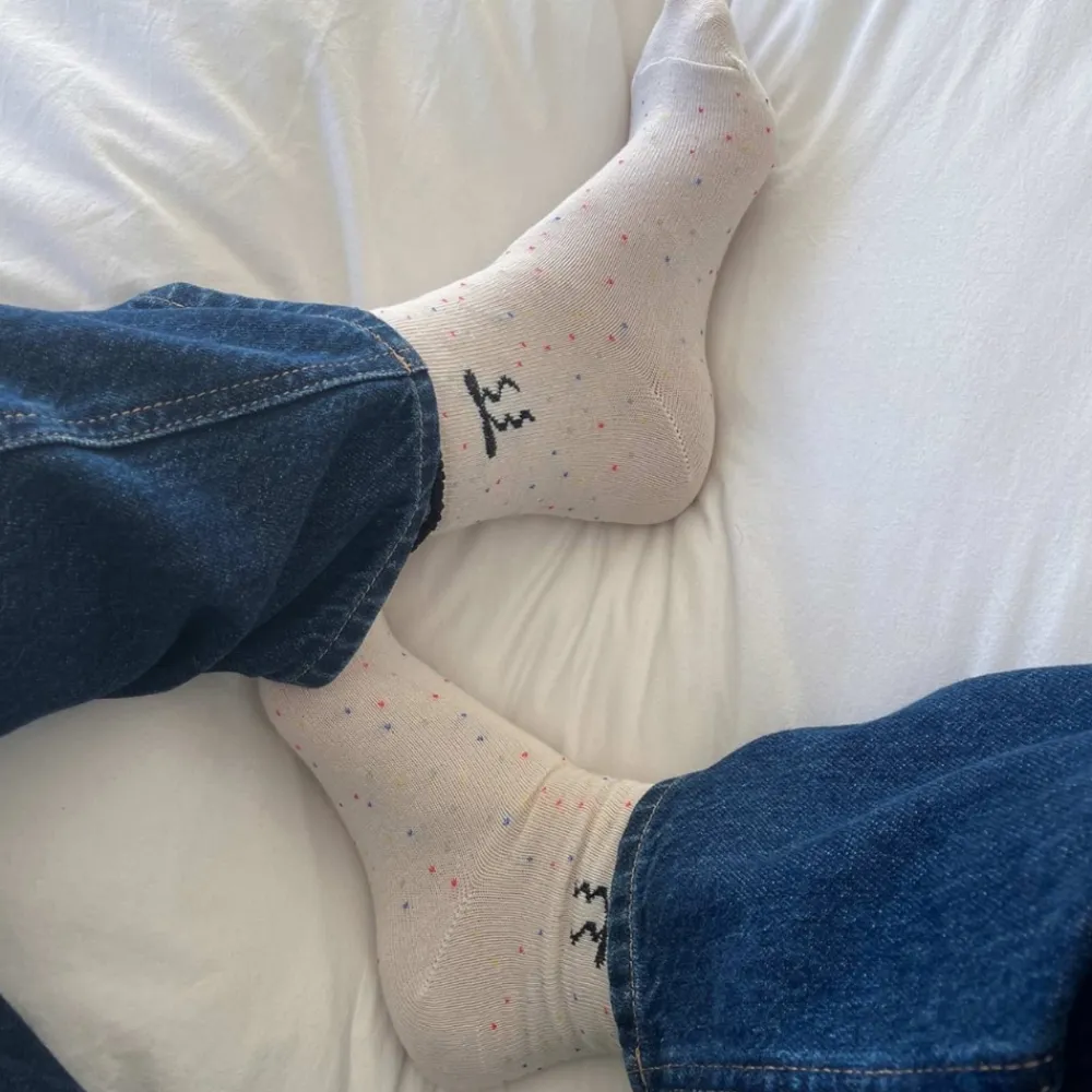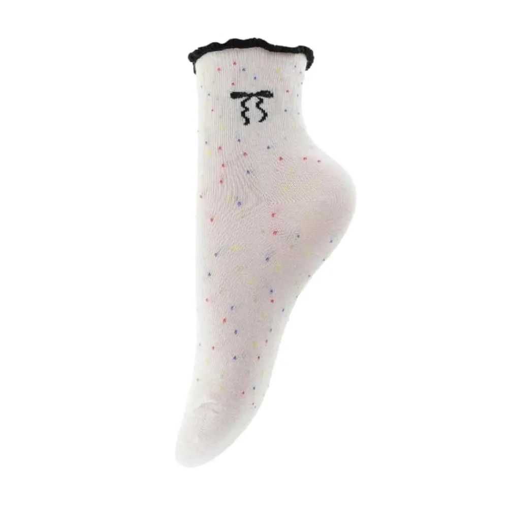 By Stær strømper til dame i råhvid. Denne råhvide strømpe med sorte flæser kombinerer stil og komfort. Med 70% bomuld er den komfortabel, åndbar og blød, mens 30% polyester giver øget slidstyrke. De fine hjerteprikker og flæser tilføjer et feminint touch, og den elastiske pasform giver optimal komfort. Strømpen kan maskinvaskes ved 30°C og er et praktisk valg til både hverdag og særlige anledninger.