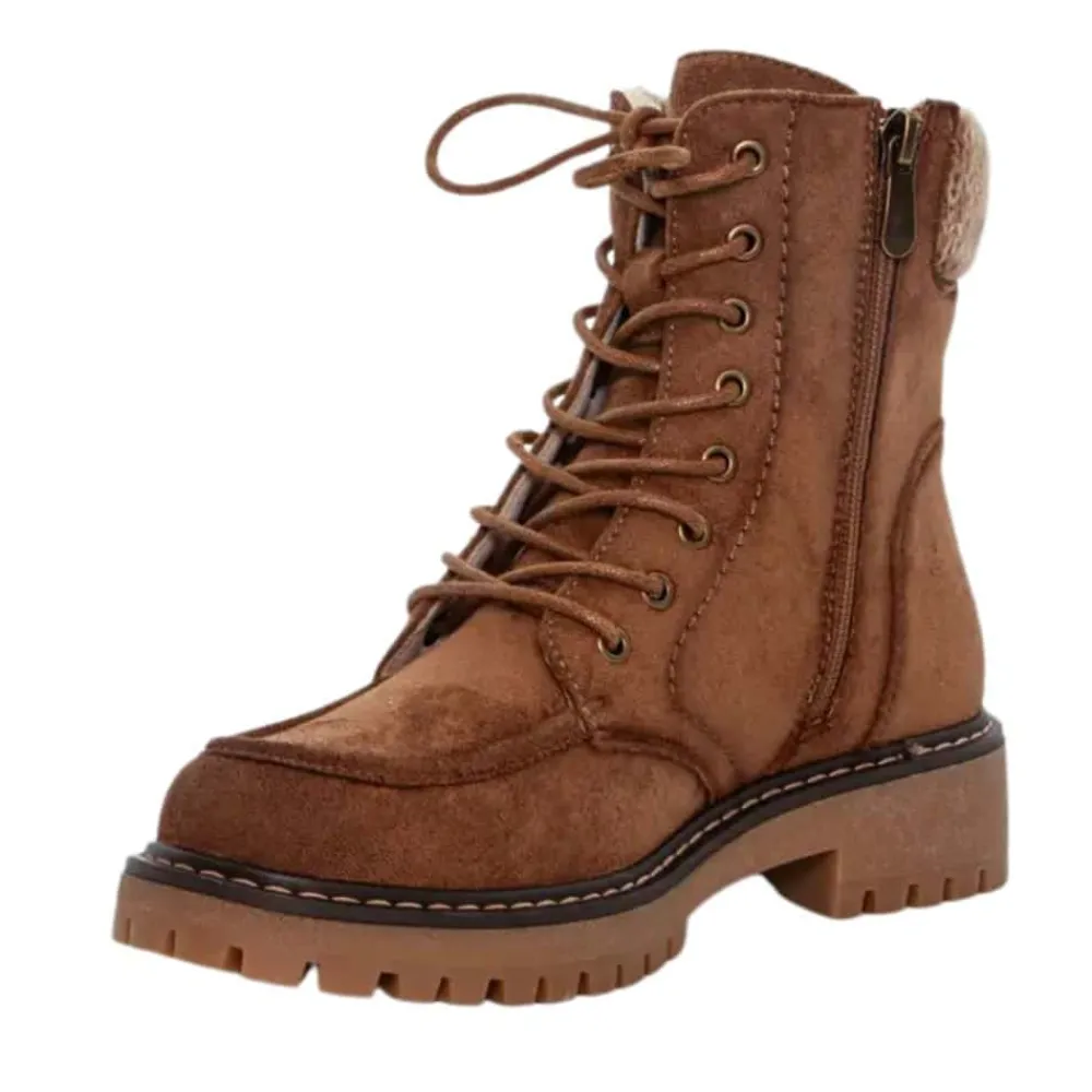 Duffy Ciavolo Uno støvle til dame i camel. Denne støvle kombinerer stil og funktionalitet på bedste vis. Støvlen har snørebånd og en funktionel lynlås, så du nemt kan tage støvlen af og på, samtidig med at pasformen kan justeres. Indvendigt finder du en blød sål og en varm foring, der sikrer god komfort gennem dagen. Den chunky ydersål med en blokhæl på 4 cm giver et stilfuldt og moderne touch