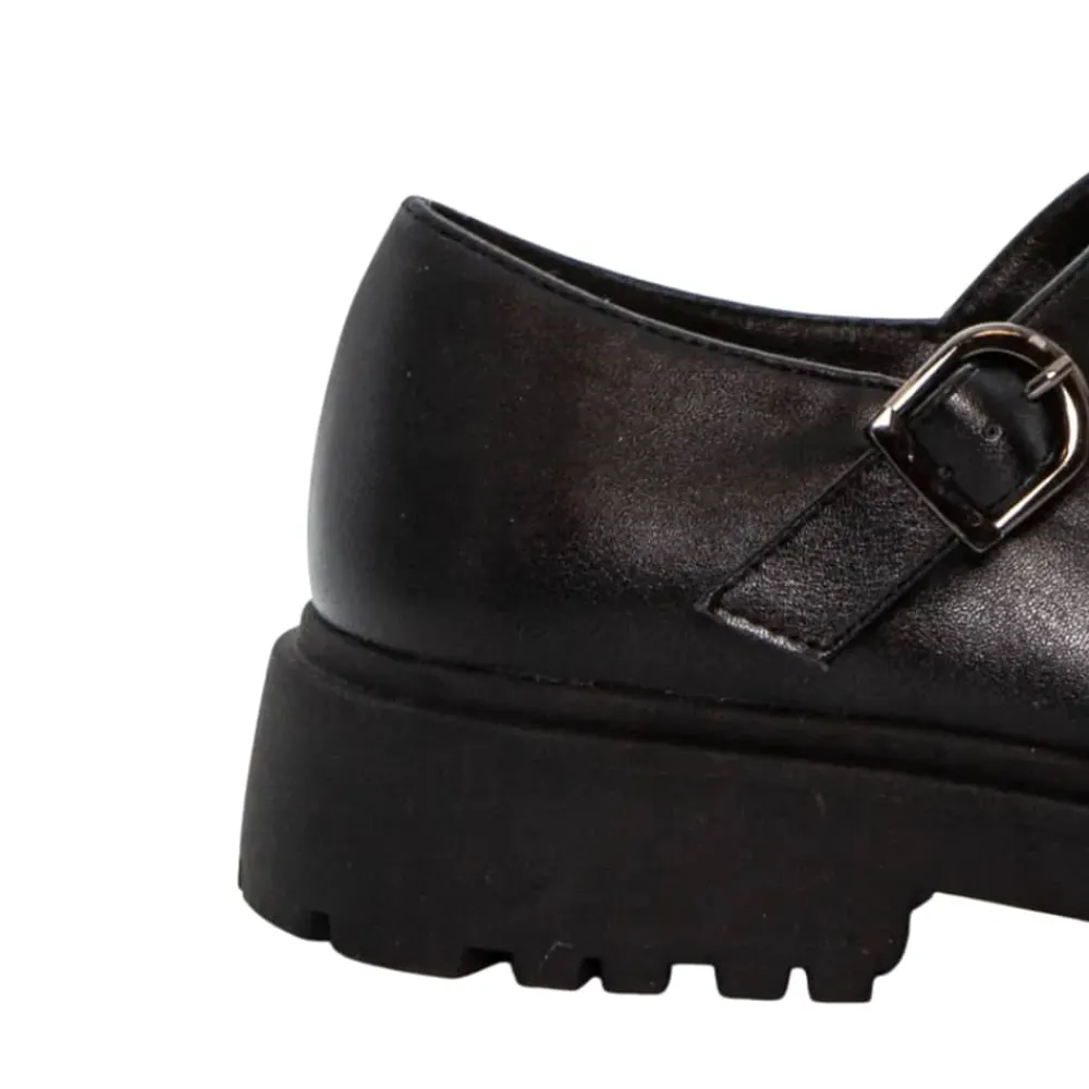 Duffy Lattarico Quattro Mary Jane sko til dame i sort. Flot og elegant sko i sort med et tidløst design, der passer til mange anledninger. Skoen har et spænde over vristen, som gør det muligt at justere pasformen, så den sidder behageligt på foden. Indvendigt finder du en blød sål, der giver god komfort hele dagen. Den chunky ydersål fuldender looket og giver skoen et moderne udtryk.
