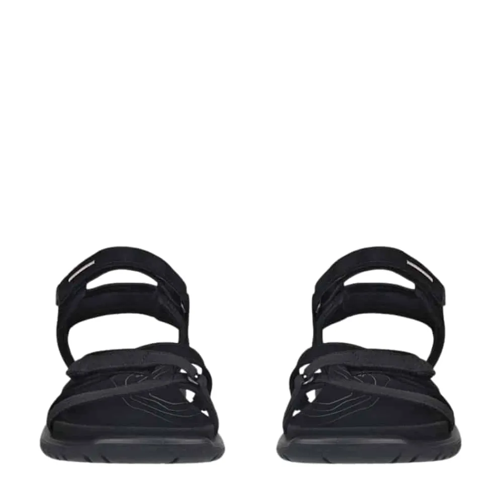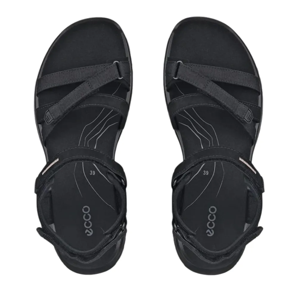 Ecco Offroad Roam sandal til dame i sort. Denne sandal kombinerer elegant design med maksimal komfort. Den har en blød læderoverdel og tre justerbare velcroremme, der sikrer en fleksibel pasform og gør den nem at tage af og på. Det tidløse design fuldendes af en stilfuld krydsrem foran. Indersålen er udstyret med Ecco Fluidform™ teknologi, der giver fremragende stødabsorbering og fleksibilitet. Den slidstærke gummisål med Ecco Receptor® teknologi sikrer stabilitet og støtte på alle underlag.