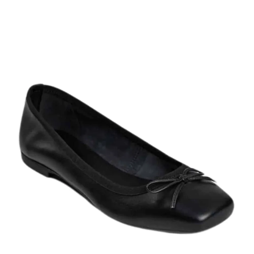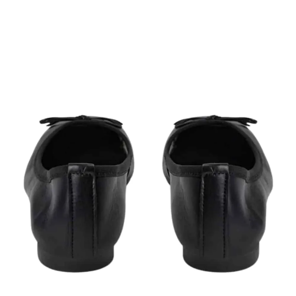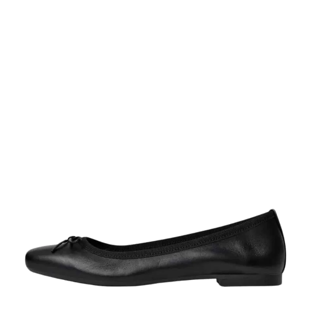 Sofie Schnoor ballerinasko til dame i sort. Giv dit outfit et feminint twist med denne smukke sorte ballerinasko. Den fine sløjfe over vristen og den firkantede snude tilføjer et moderne og elegant udtryk. Fremstillet i 100% skind for optimal komfort og holdbarhed, mens gummisålen sikrer et stabilt og behageligt skridt dagen lang.